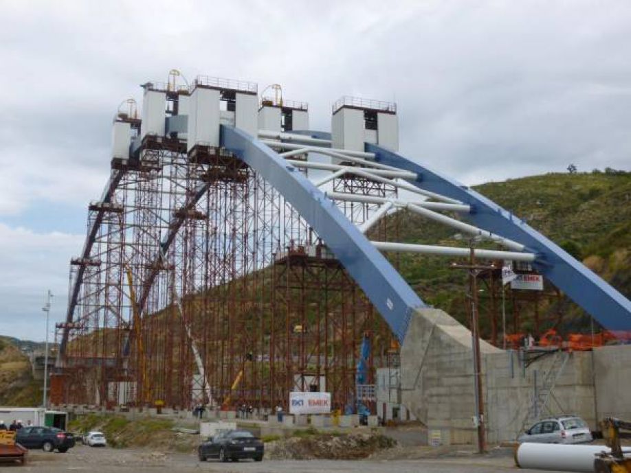Την ερχόμενη εβδομάδα ολοκληρώνεται η τοποθέτηση των τόξων και απομακρύνονται οι πύργοι από τη μεταλλική τοξωτή γέφυρα στο τμήμα του αυτοκινητόδρομου Παραδείσια - Τσακώνα. Αμέσως μετά ξεκινάει η ανάρτηση των συρματόσχοινων και του καταστρώματος.