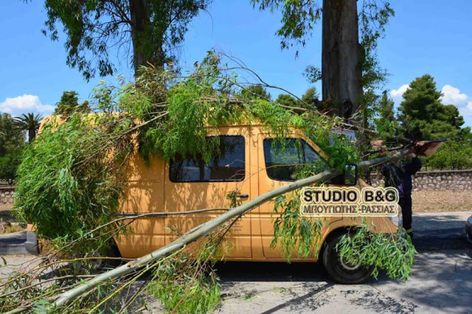 Κλάρα μεγάλου δέντρου πλάκωσε αυτοκίνητο στο Ναύπλιο (vd)