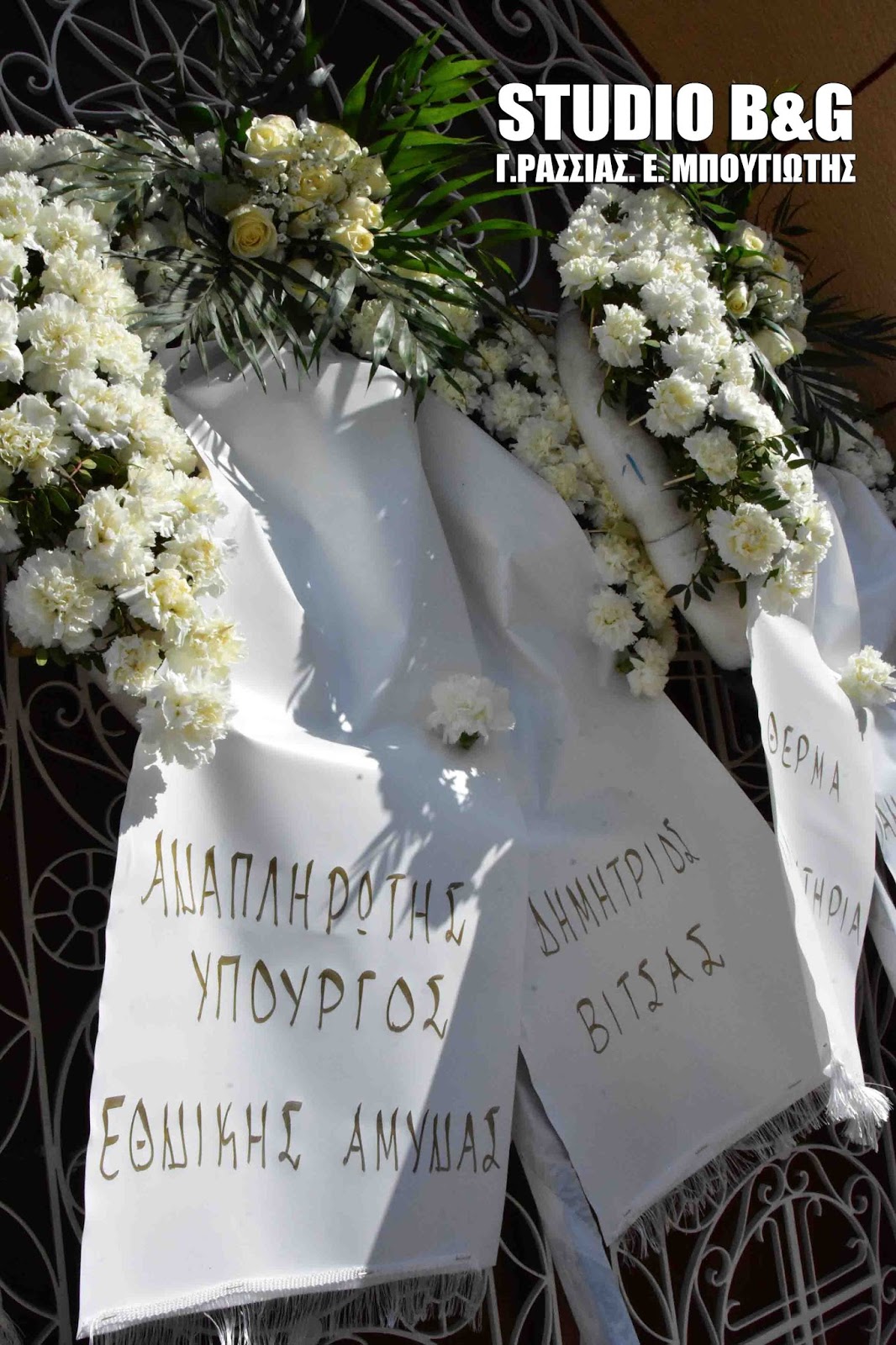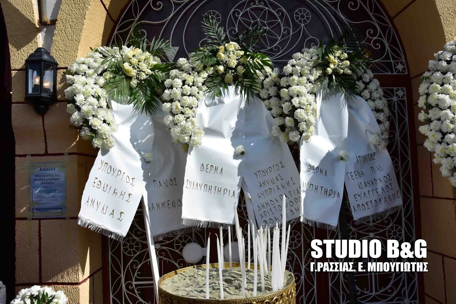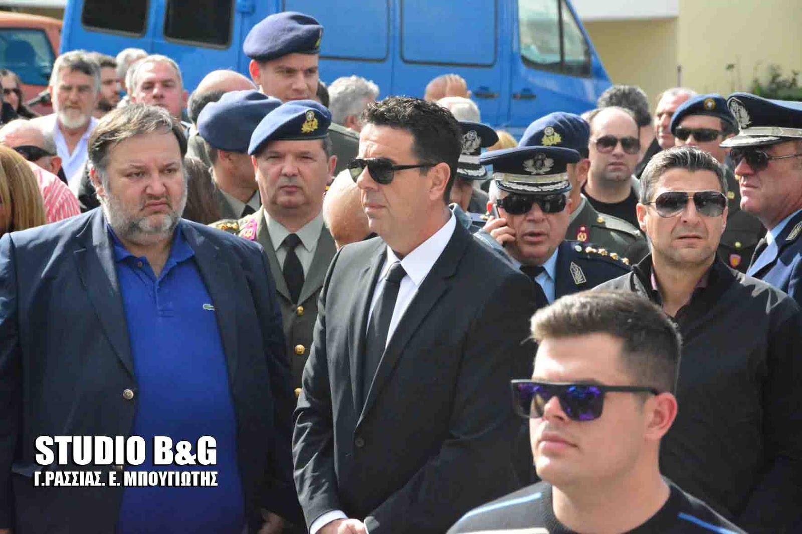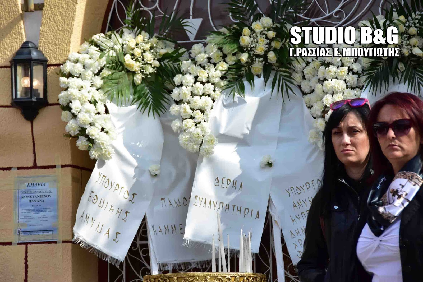 Στην εξόδιο ακολουθία, που εψάλη στον ιερό ναό Κοιμήσεως της Θεοτόκου Αρίας Ναυπλίου, χοροστούντος του Μητροπολίτη Αργολίδος Νεκταρίου καθώς και του Επισκόπου Επιδαύρου Καλλινίκου, παραβρέθηκαν ,ο αρχηγός ΓΕΕΘΑ Ευάγγελος Αποστολάκης, ο Αρχηγός ΓΕΝ Αντιναύαρχος Γιώργος Γιακουμάκης, οι βουλευτές Αργολίδος Γ.Γκιόλας ,Γ.Ανδριανός, Γ.Μανιάτης ,ο Αντιπεριφερειάρχης Αργολίδος Α.Χειβιδόπουλος, οι θεματικοί αντιπεριφερειάρχες Β.Σιδέρης, Φ.Στεφανόπουλος,ο Δήμαρχος Ναυπλιέων Δ.Κωστούρος , αντιδημαρχοι και δημοτικοί σύμβουλοι του Δήμου Ναυπλιέων και πάρα πολύς κόσμος από όλη την Αργολίδα.