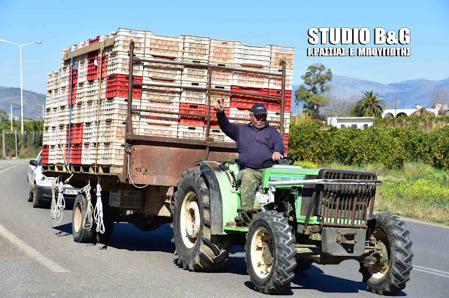 Οι αγρότες με αγροτικά μηχανήματα και αυτοκίνητα έκαναν πορεία διαμαρτυρίας στην πόλη του Άργους με τελικό προορισμό τους Μύλους Αργολίδας.