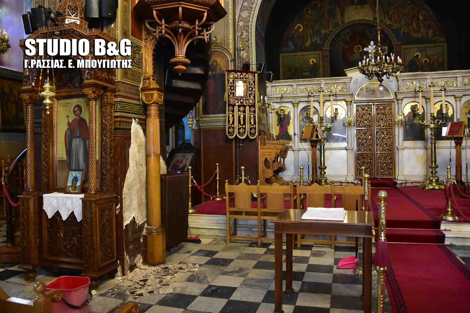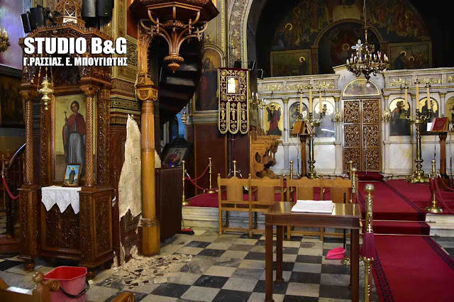 Από θαύμα δεν θρηνήσαμε θύματα σήμερα το απόγευμα στον Μητροπολιτικό Ιερό Ναό Αγίου Γεωργίου στο Ναύπλιο όταν ένα μεγάλο κομμάτι της τοιχοποιίας αποκολλήθηκε και έπεσε μέσα στον ναό.