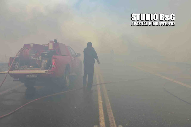 Η πυρκαγιά σε κάποια σημεία πέρασε τον δρόμο της παραλιακής Ναυπλίου Νέας Κίου και κινδυνεψε ο υδροβιότοπος της περιοχής, ενώ η κυκλοφορία των οχημάτων διεκόπη από την αστυνομία.