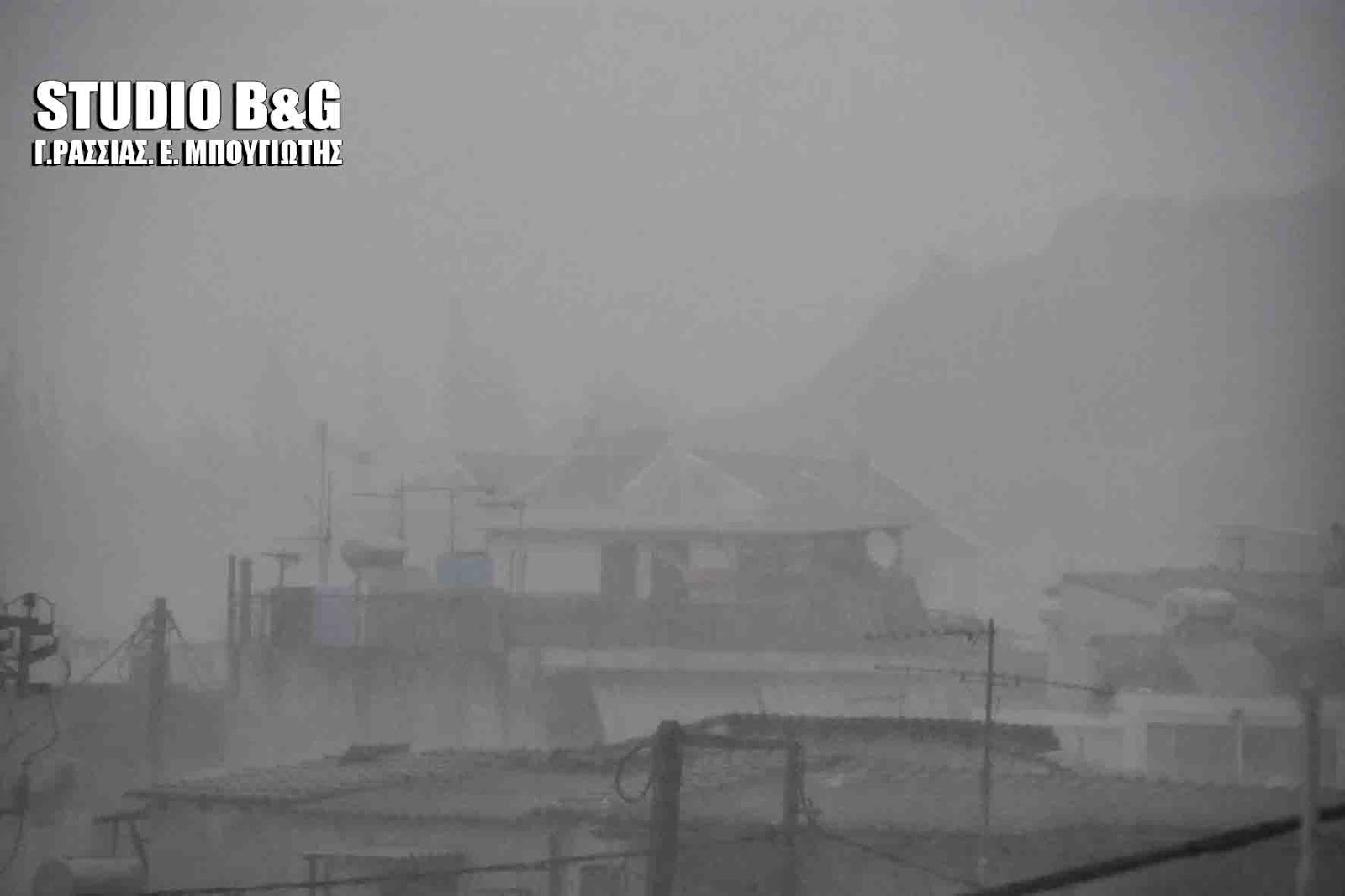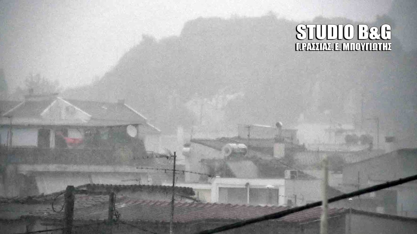 Ισχυρή καταιγίδα στο Ναύπλιο - Δρόμοι μετατράπηκαν σε ποτάμια (vd)