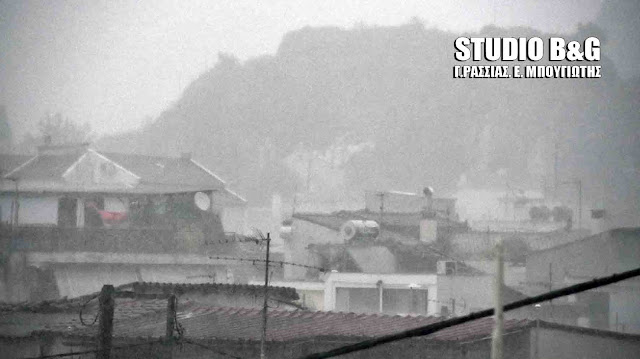 Ισχυρή καταιγίδα ξέσπασε στο Ναύπλιο το απόγευμα της Τρίτης 9 Αυγούστου,με αστραπές και βροντές να σχίζουν το ουρανό ενώ η βροχόπτωση ήταν πολύ ισχυρή.