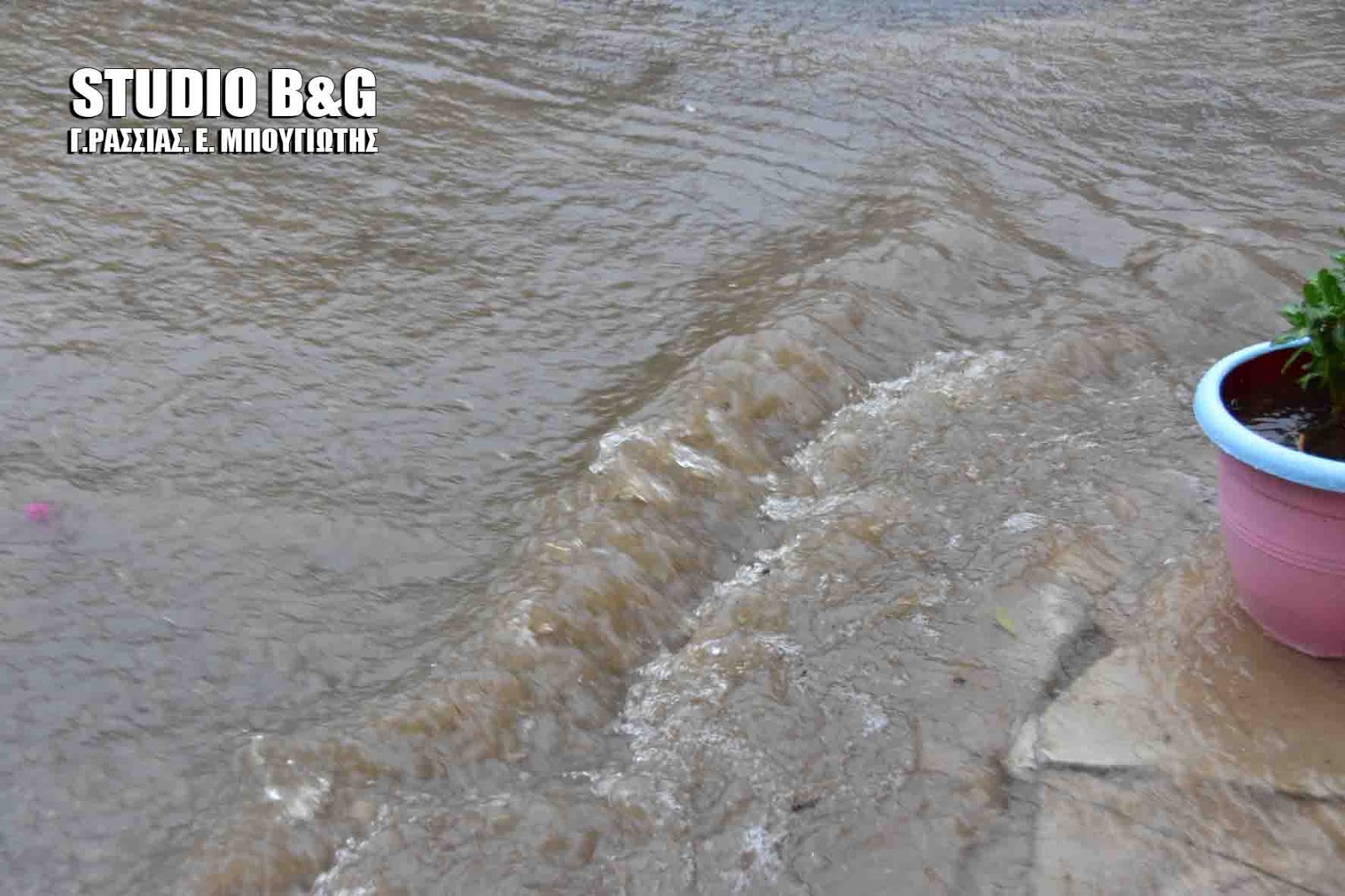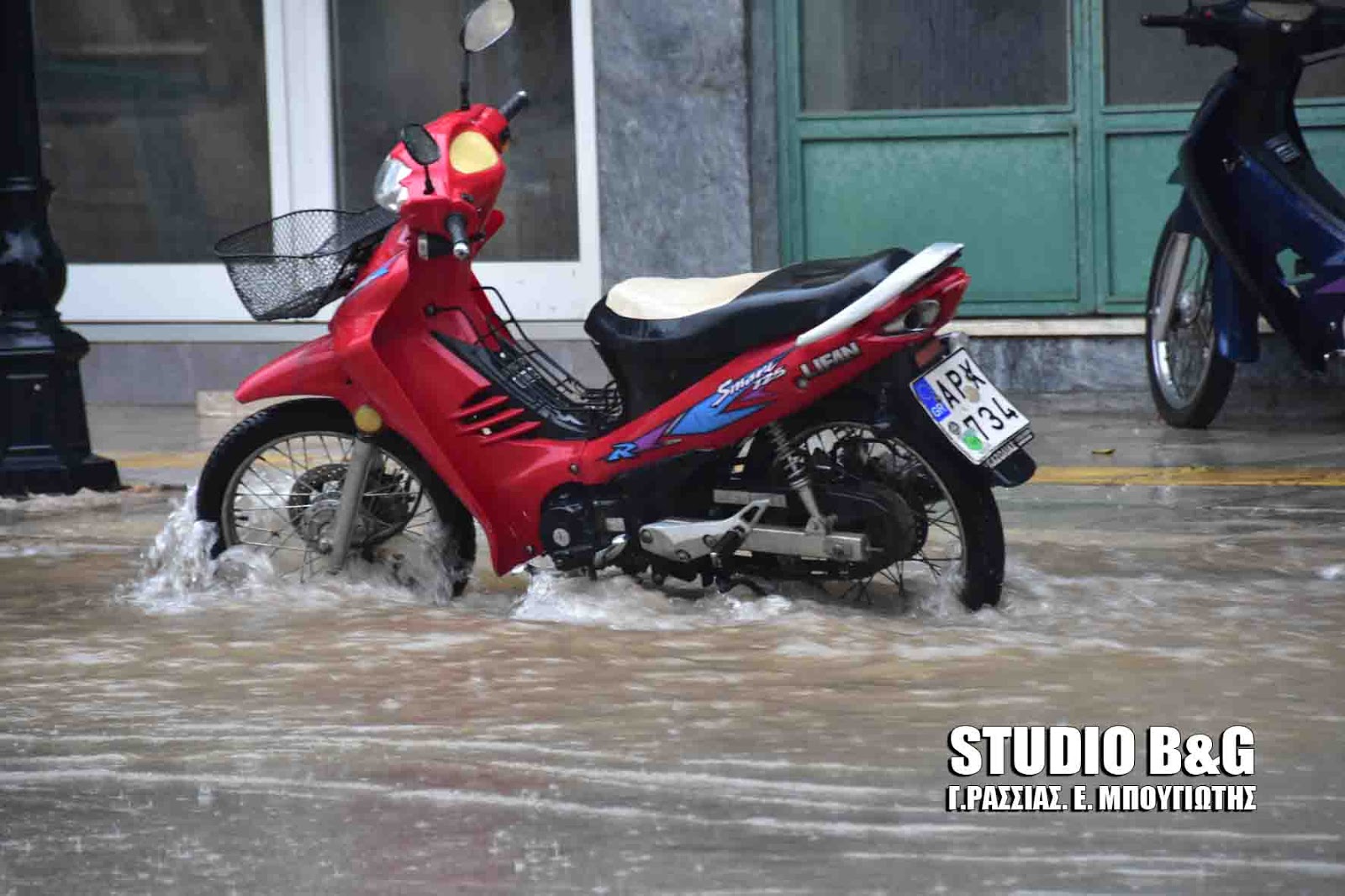 Σε κάποια σημεία του οδικού δικτύου στην πόλη του Ναυπλίου δημιουργήθηκαν λίμνες από την συσσώρευση μεγάλου όγκου νερού που έπεσε μέσα σε λίγα λεπτά της ώρας.