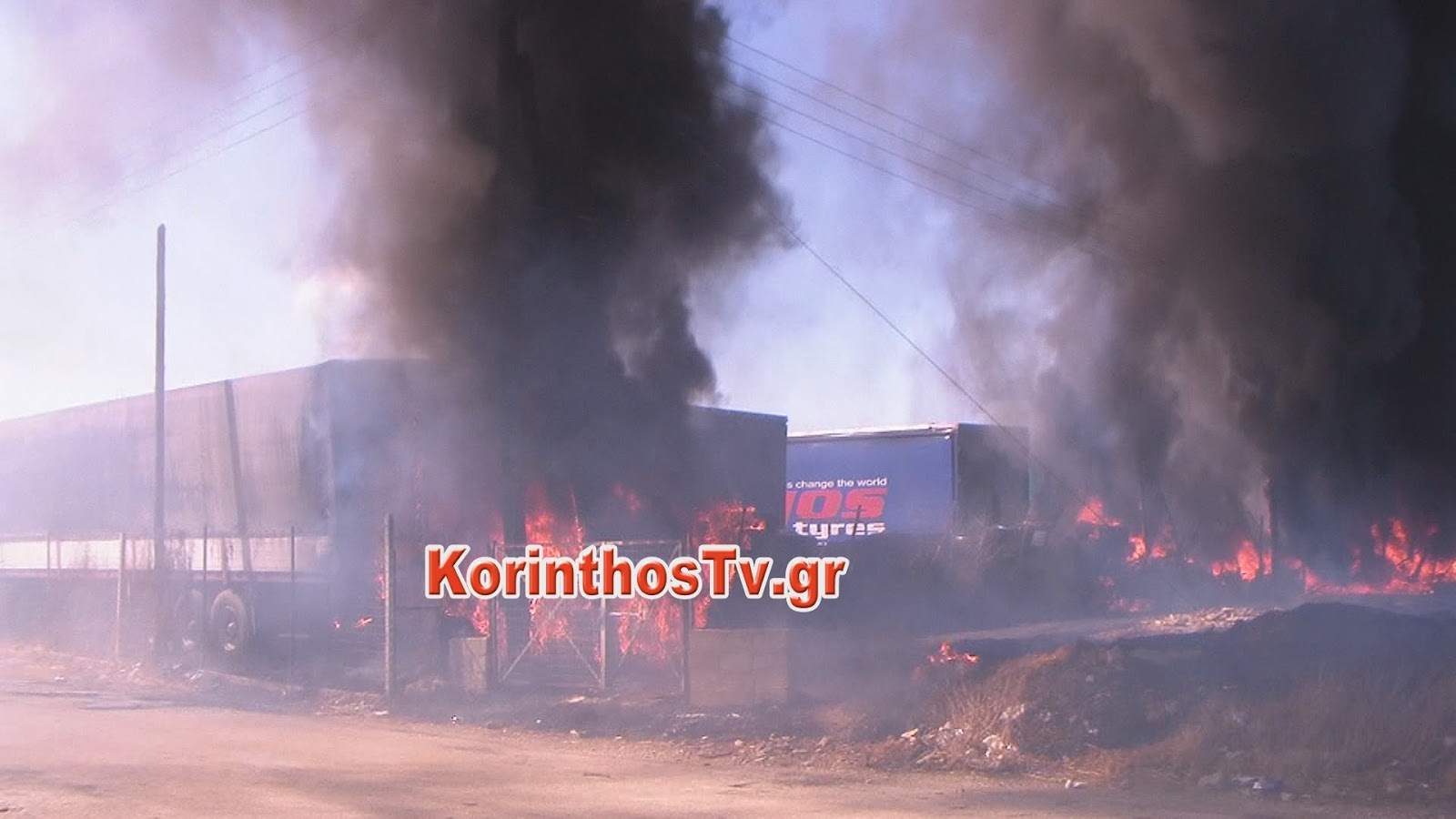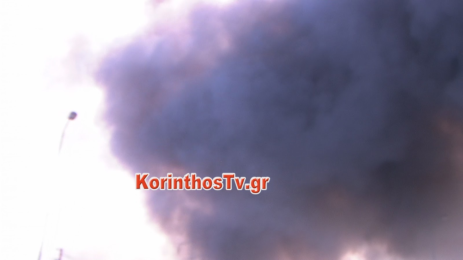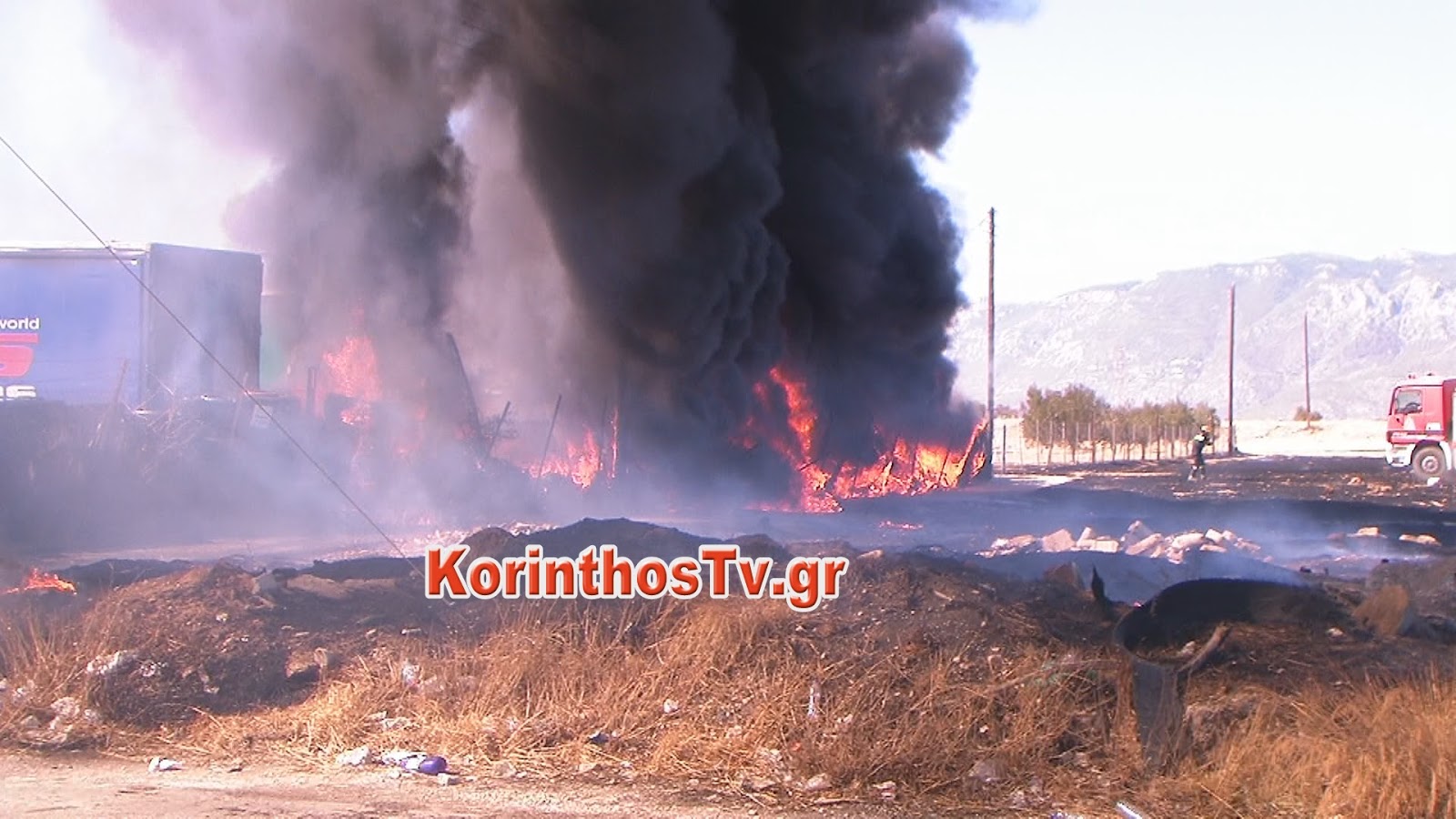 Mεγάλη φωτιά σε μάντρα αυτοκινήτων στον Ισθμό της Κορίνθου (vd)