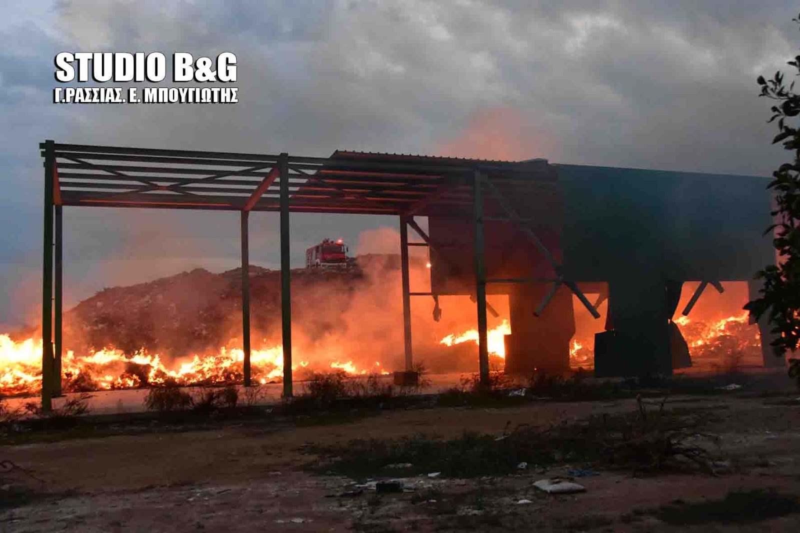 Η εστία της φωτιάς βρίσκεται στο βόρειο τμήμα της χωματερής δεν καίει τον σωρό με τα σκουπίδια αλλά μια τεράστια στοίβα με κλαριά δέντρων και το σιδερένιο παράπηγμα που βρίσκεται εκεί.