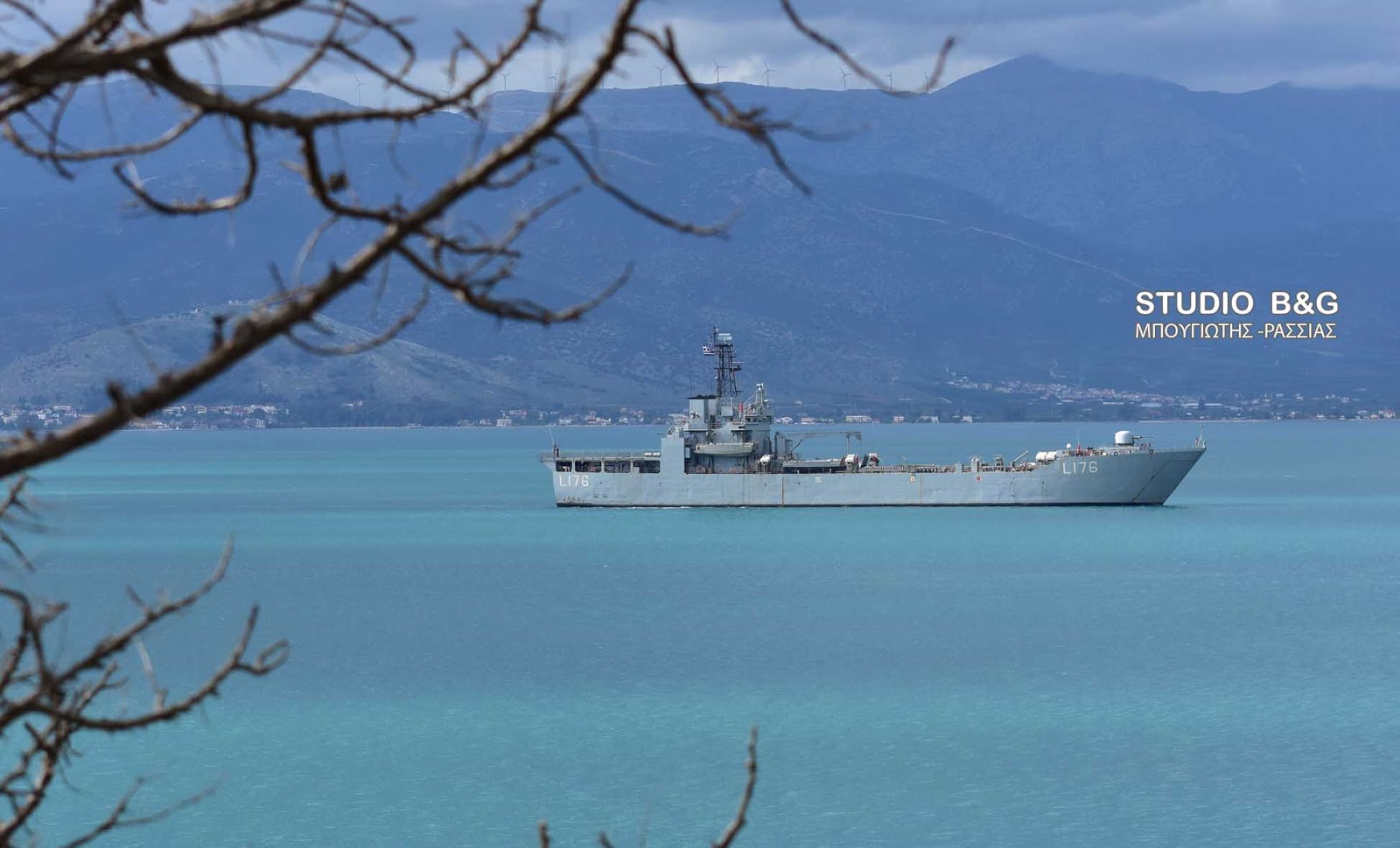 Το αρματαγωγό "Λέσβος" του Πολεμικού Ναυτικού στο Ναύπλιο (vd)
