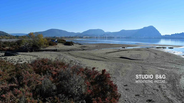 Εντυπωσιάζει για ακόμη μια φορά το φαινόμενο της άμπωτης στην πόλη του Ναυπλίου, καθώς η έκταση που αποκαλύπτεται είναι τεράστια.