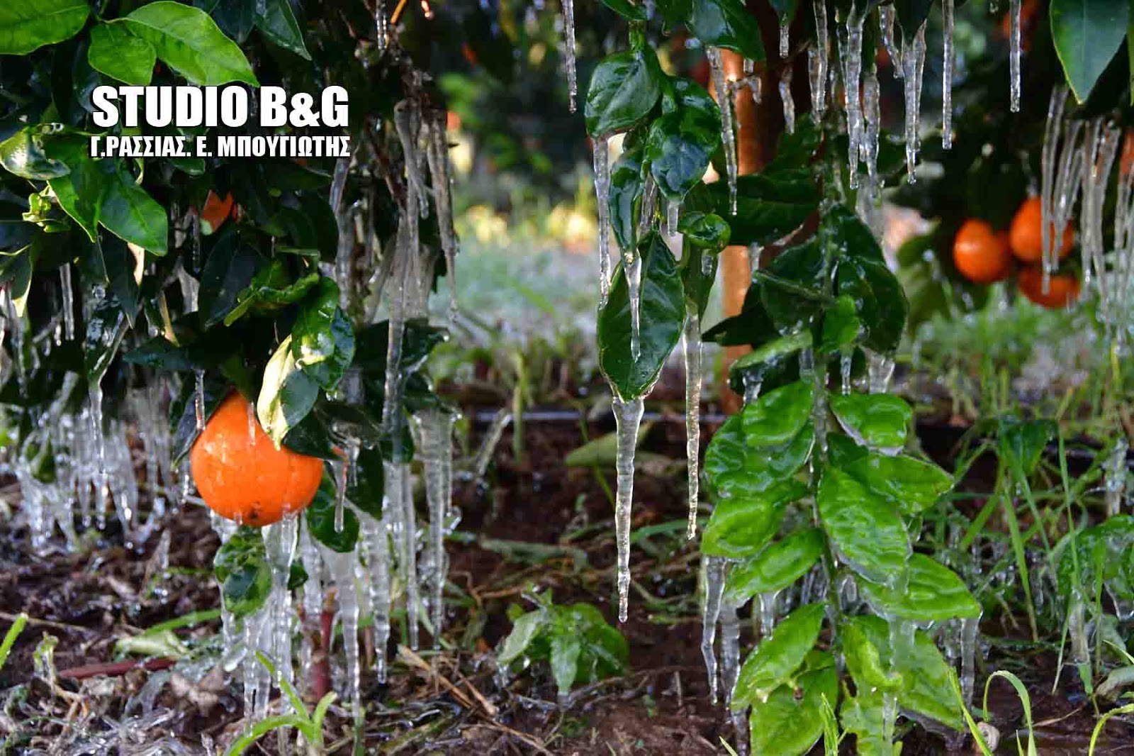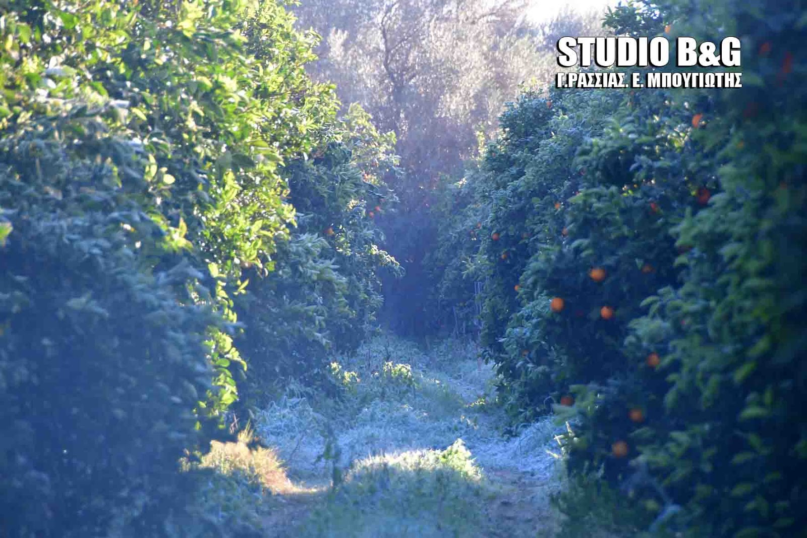 Εκτεταμένος ήταν ο παγετός που επικράτησε τις βραδυνές και πρωινές ώρες στον κάμπο της Αργολίδας όπου κατά τόπους ο υδράργυρος κατέγραψε ανεπίσημα πτώση μέχρι και τους -4 βαθμούς κελσίου.