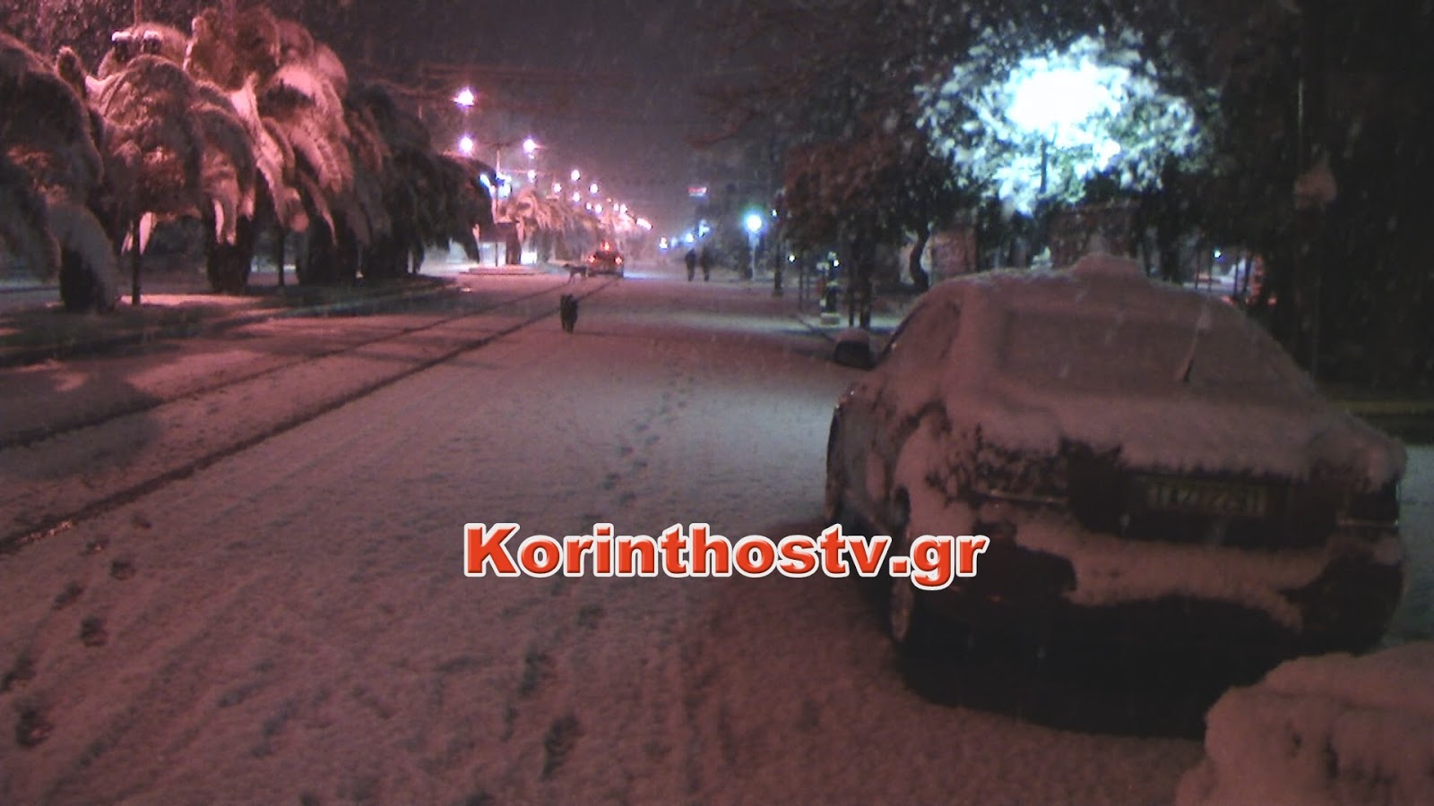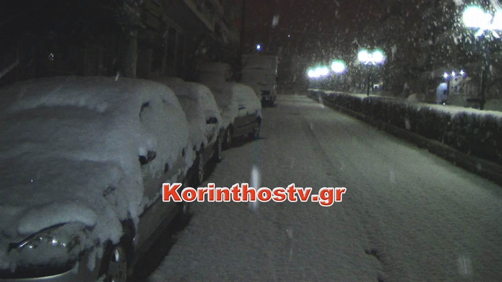 Ασταμάτητη είναι η χιονόπτωση καθ’ όλη τη διάρκεια της νύχτας σε όλο τον Νομό Κορινθίας, με αποτέλεσμα το χιόνι να φτάνει τους 20 πόντους.