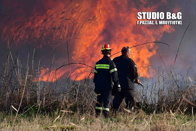 Πυροσβέστες επιχειρούν να θέσουν υπό έλεγχο μεγάλη πυρκαγιά που ξέσπασε στις 4 περίπου το μεσημέρι σήμερα 28 Φεβρουαρίου 2017 στην περιοχή της Αγίας Άννας (βάλτος Νέας Κίου) στο Τημένιο Άργους.