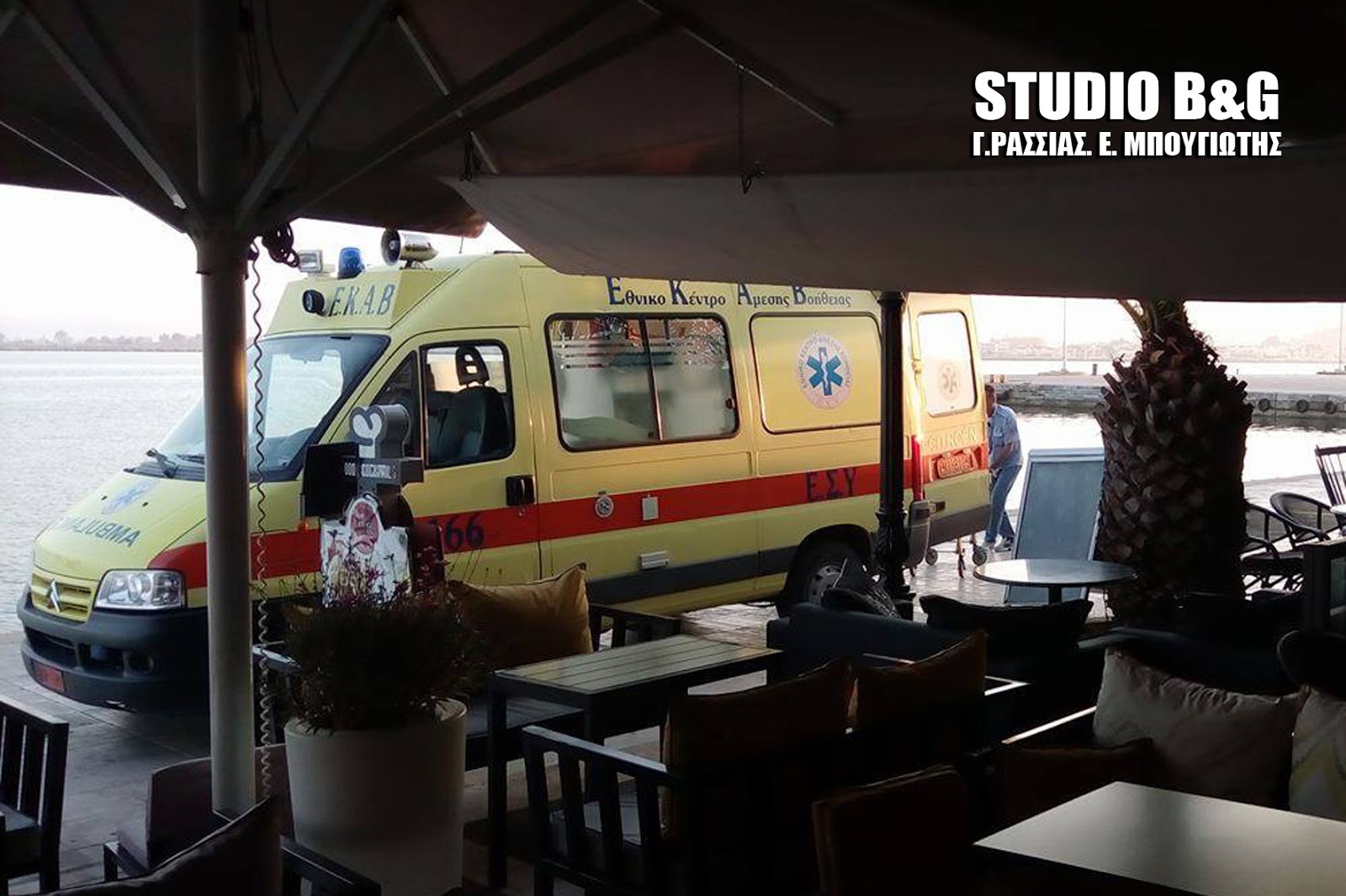 Στο σημείο έσπευσε ασθενοφόρο του ΕΚΑΒ που τον μετέφερε στο Νοσοκομείο Ναυπλίου.
