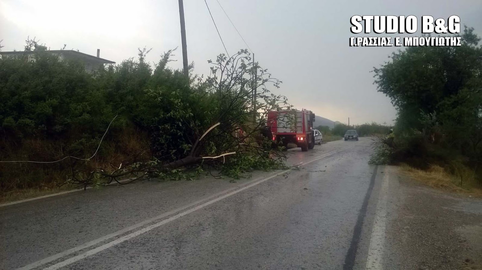 Από την σφοδρή βροχόπτωση έσπασαν κλάρες δέντρων που έπεσαν και έκλεισαν δρόμους και χρειάστηκε η επέμβαση της πυροσβεστικής για να απελευθερωθεί το οδόστρωμα σε κεντρικούς και επαρχιακούς δρόμους.