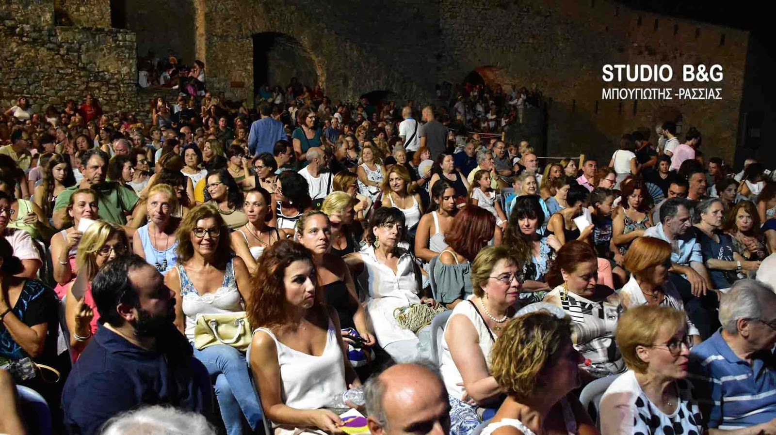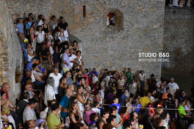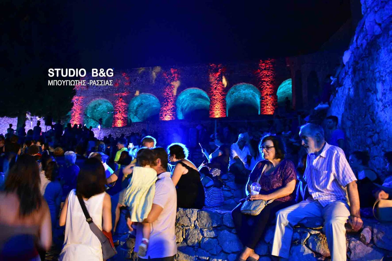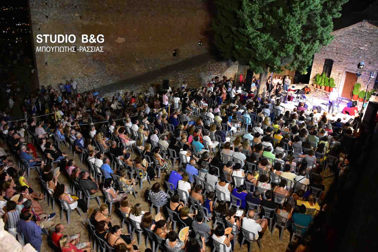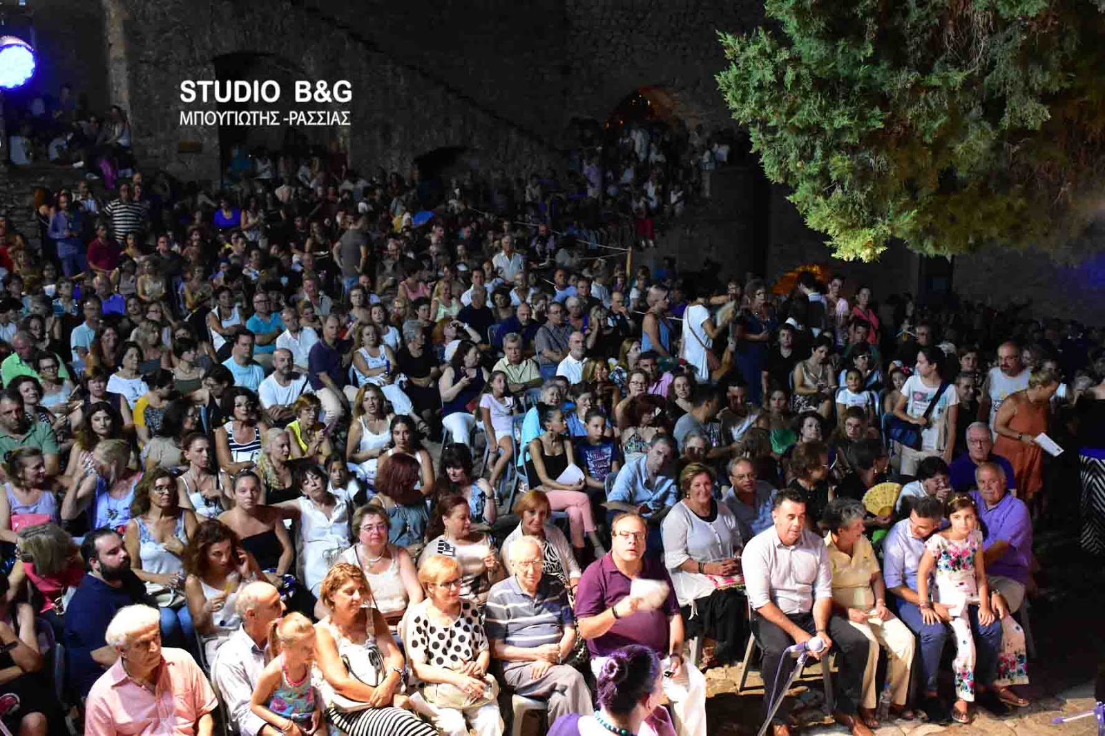 Η Ευανθία Ρεμπούτσικα, κάτω από το ολόγιομο Αυγουστιάτικο φεγγάρι και με φόντο τον αρχαιολογικό χώρο του Παλαμηδίου στο Ναύπλιο, ερμήνευσε με το δικό της τρόπο μία επιλογή από τραγούδια που έχει σφραγίσει με την εκφραστικότητά της.