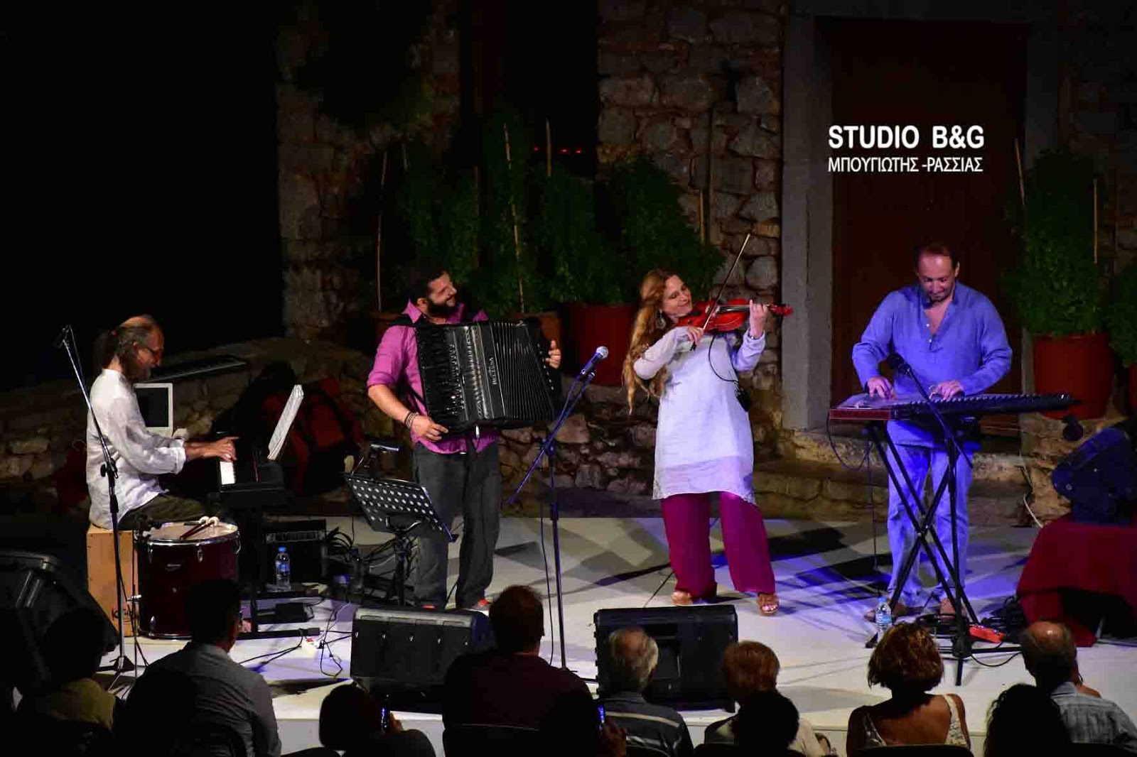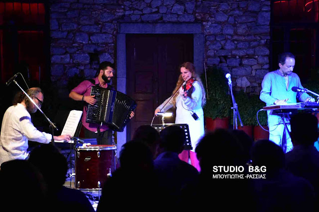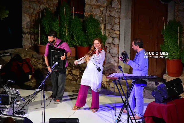 Η εξαιρετική ερμηνεύτρια, με εύρος φωνής και ρεπερτορίου, πλαισιώθηκε από τον Ανδρέα Συμβουλόπουλο στο πιάνο, τον Πάνο Δημητρακόπουλο στο κανονάκι και τον Θάνο Σταυρίδη στο ακορντεόν και χάρισαν μια ανεπανάληπτη βραδιά κάτω από την πανσέληνο που είχε και το ξεχωριστό αστρονομικό ενδιαφέρον της μερικής έκλειψης.