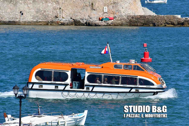 Το κρουαζιερόπλοιο "Westerdam" της Holland America Line κατέπλευσε το πρωί της Πέμπτης 31 Αυγούστου 2017 αρόδο ανοιχτά στο λιμάνι του Ναυπλίου μεταφέροντας περίπου 2000 επιβάτες και πλήρωμα.