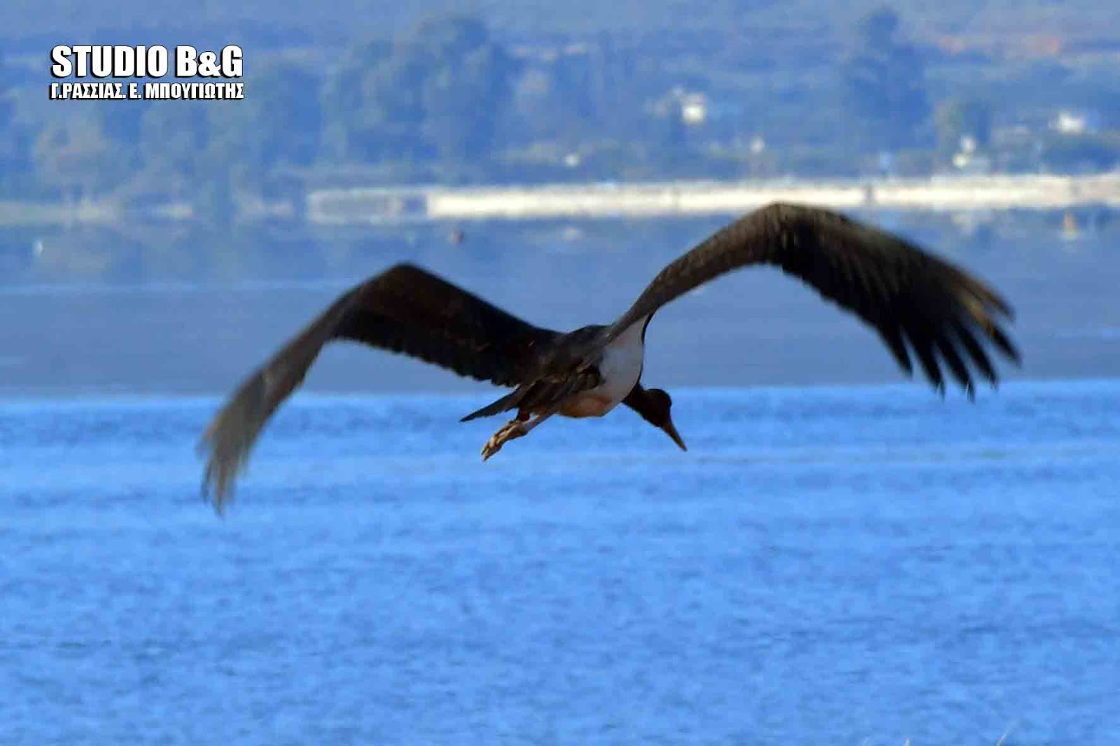 Σπάνιος μαυροπελαργός εμφανίστηκε στο Ναύπλιο (vd)