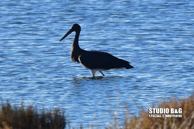 Ένας μαυροπελαργός, το μεταναστευτικό πτηνό που σύμφωνα με το Κόκκινο Βιβλίο των Απειλούμενων Ζώων της Ελλάδας κινδυνεύει με εξαφάνιση, εμφανίστηκε σήμερα Πέμπτη 23 Νοεμβρίου 2017 στον υδροβιότοπο Ναυπλίου Νέας Κίου.