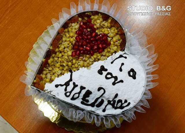 Μία τούρτα σε σχήμα καρδιάς αλλά με με κόλλυβα έφτιαξε γραφείο τελετών στην πόλη του Ναυπλίου μετά από παραγγελία πελάτη σήμερα Τετάρτη 14 Φεβρουαρίου 2018 ανήμερα του Αγίου Βαλεντίνου.