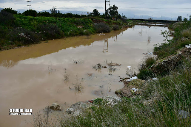 Οι έντονες βροχοπτώσεις που σημειώθηκαν τις προηγούμενες ημέρες στην Αργολίδα είχαν ως αποτέλεσμα ο ξεροπόταμος Ξεριάς στο Άργος να κατεβάσει και να γεμίσει νερό, λάσπη και φερτά υλικά.