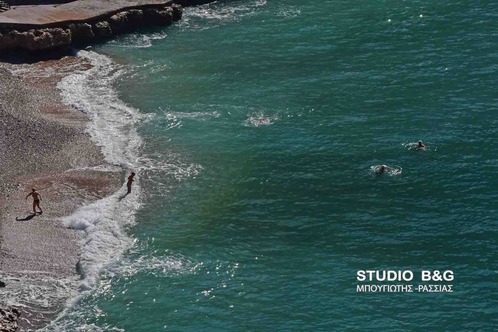 Την ανοιξιάτικη σημερινή καλοκαιρία που επικράτησε στην περιοχή του Ναυπλίου εκμεταλλεύτηκαν οι τολμηροί για ένα μπάνιο στην θάλασσα.
