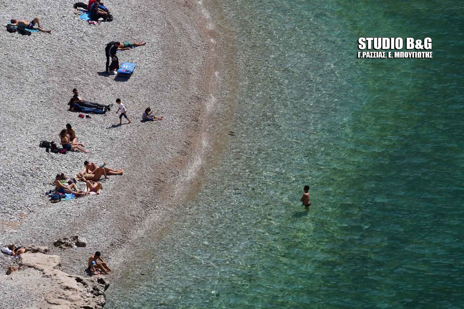 Έτσι σήμερα Τρίτη του Πάσχα δεκάδες λουόμενοι ντόπιοι και επισκέπτες έκαναν ίσως και το πρώτο τους μπάνιο στην πανέμορφη παραλία της Αρβανιτιάς στην πόλη του Ναυπλίου.