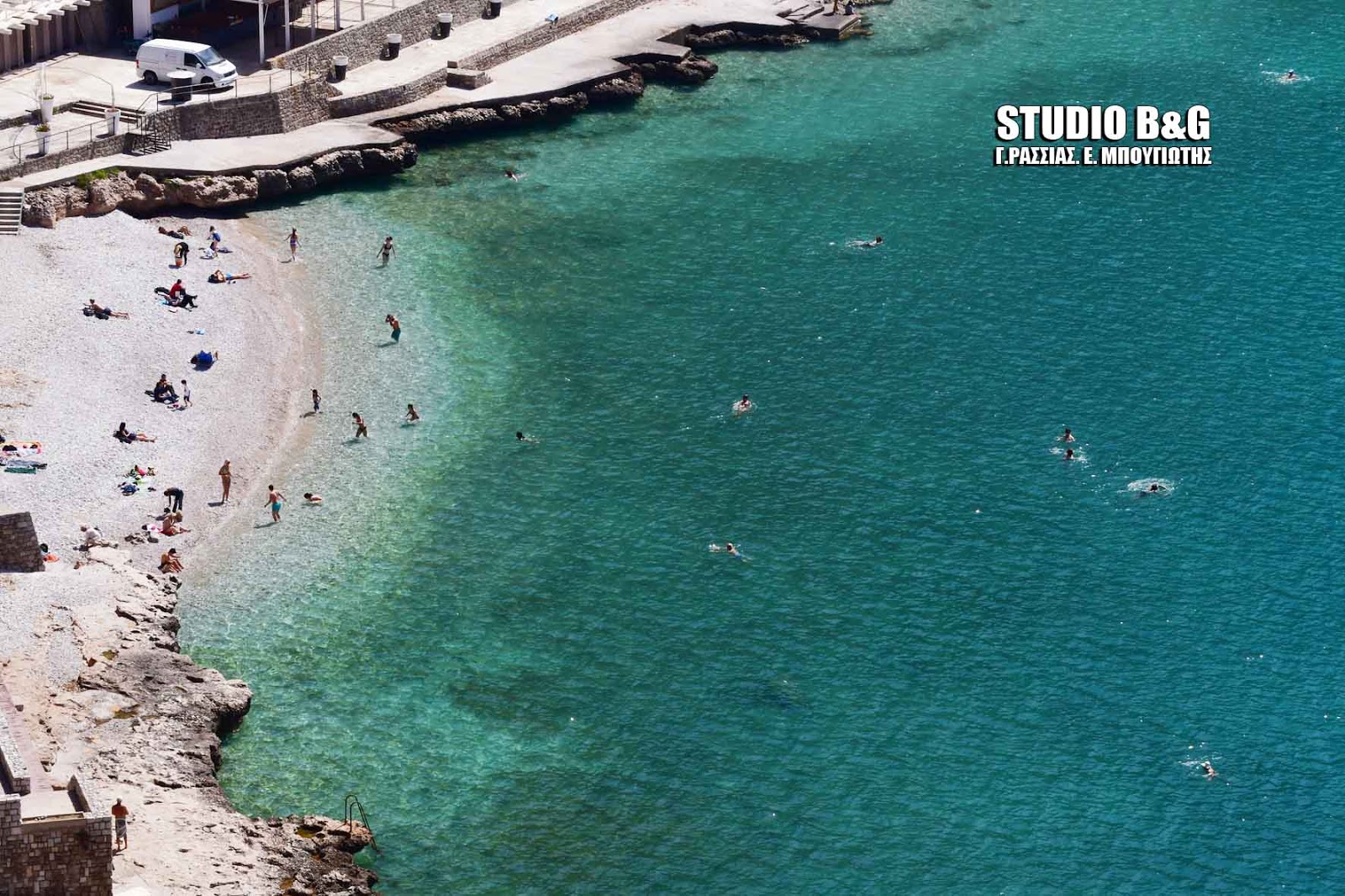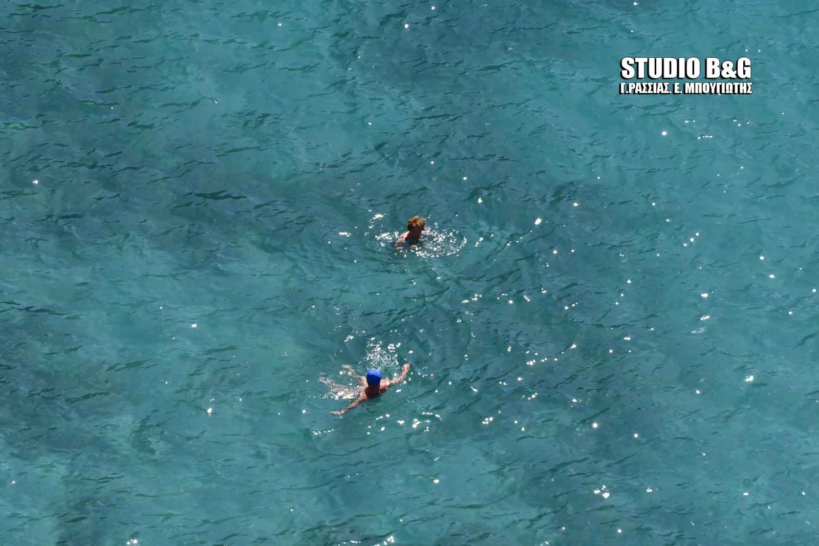 Ο καλός ανοιξιάτικος καιρός και η άνοδος της θερμοκρασίας στην πόλη του Ναυπλίου ξύπνησε την όρεξη σε πολλούς για βουτιές στη θαλασσα.