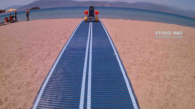 Νέα υποδομή τοποθετήθηκε στην παραλία Καραθώνας στο Ναύπλιο για την εξυπηρέτηση των ατόμων με αναπηρία, προκειμένου, να απολαμβάνουν με ασφάλεια και ευκολία το μπάνιο τους στη θάλασσα.