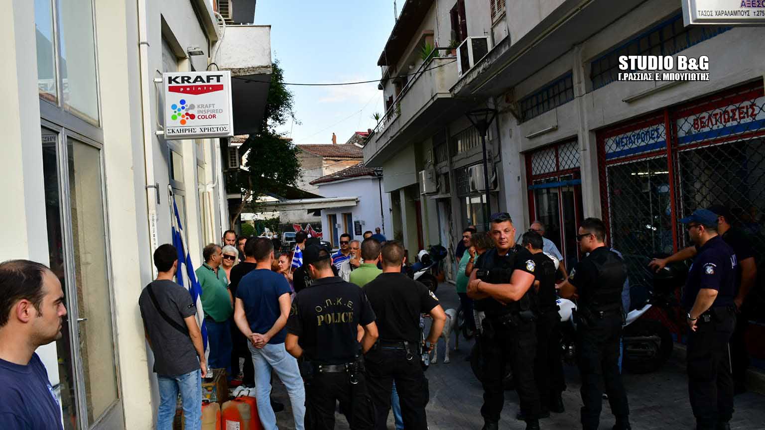 Ο υφυπουργός που ήταν προγραμματισμένο να μιλήσει για τα Ασφαλιστικά – Συνταξιοδοτικά θέματα, πραγματοποίησε την ομιλία του μπροστά σε περιορισμένο αριθμητικά ακροατήριο και με την έντονη παρουσία της αστυνομίας μέσα και έξω από το Εργατικό Κέντρο της πόλης του Άργους