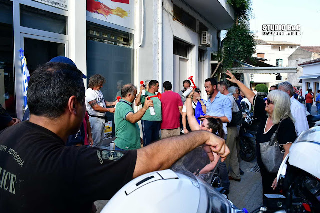 Έξω από το Εργατικό Κέντρο του Άργους πολίτες που είχαν συγκεντρωθεί, αποδοκίμασαν την κυβέρνηση στο πρόσωπο του Υφυπουργού Εργασίας, για την συμφωνία με την ΠΓΔΜ, φωνάζοντας συνθήματα για την Ελληνικότητα της Μακεδονίας.