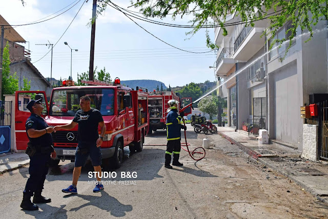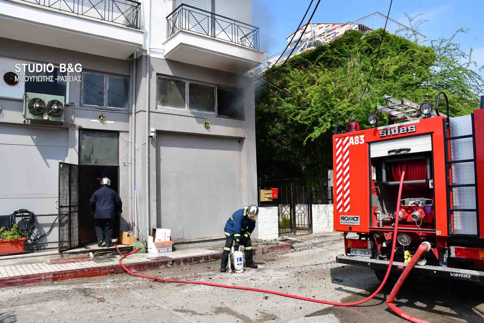 Πυρκαγιά εκδηλώθηκε σε αποθήκη καταστήματος εστίασης στην Οδό Ασκληπιού στο Ναύπλιο στις 11 περίπου το πρωί την Κυριακή 8 Ιουλίου 2018.