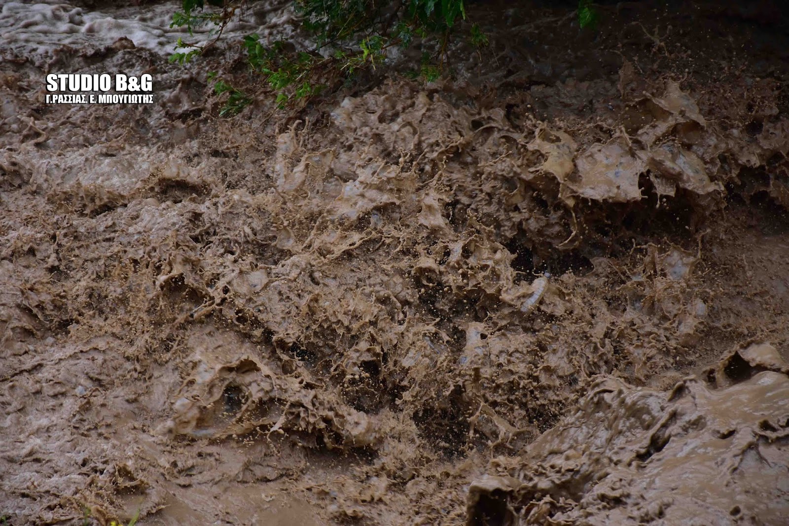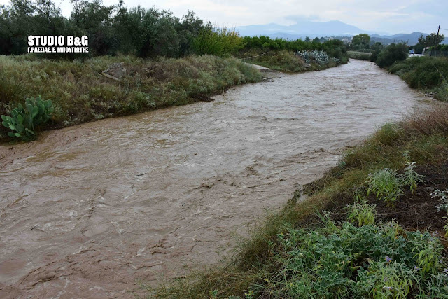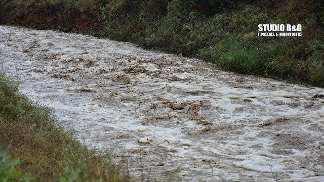 Η καταρρακτώδης βροχή που έπεσε στα ορεινά τμήματα του Δήμου Ναυπλιέων ηταν διαρκείας και τα νερά καταλήγουν σε χείμαρρους και ρέματα που εκβάλουν στον Αργολικό κόλπο.