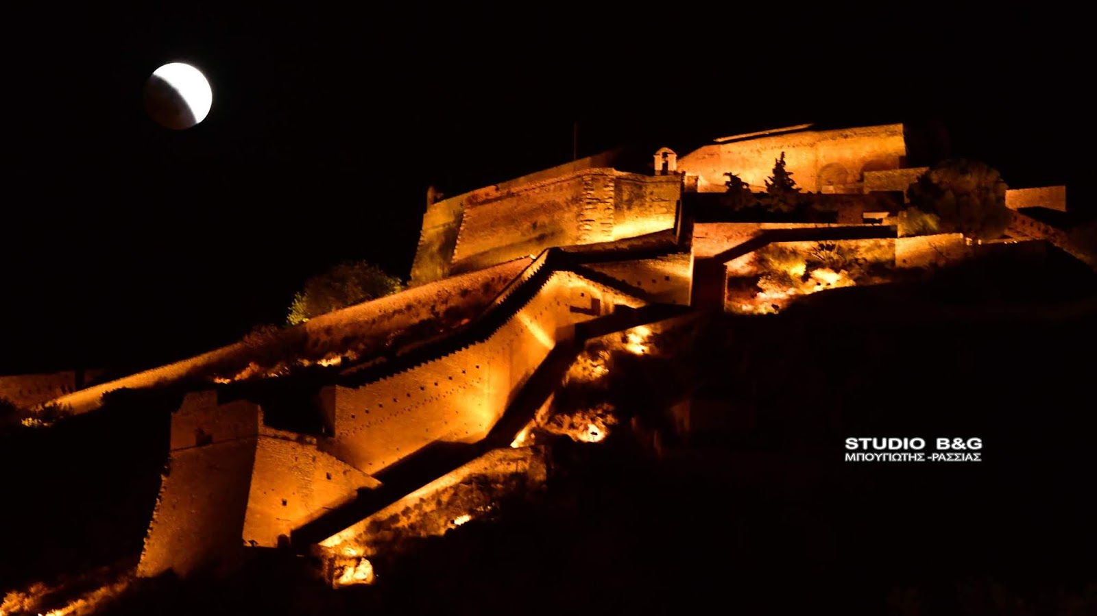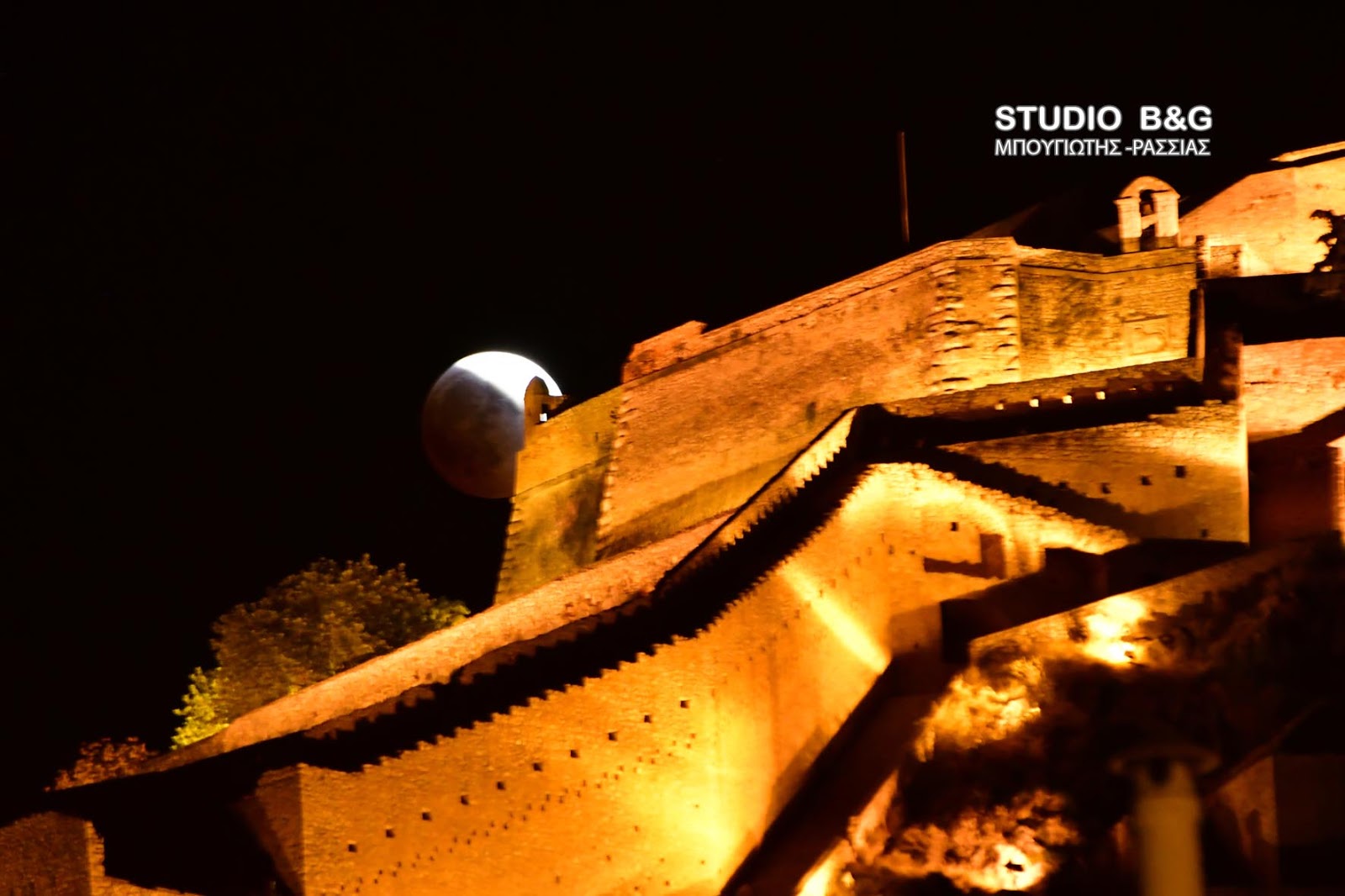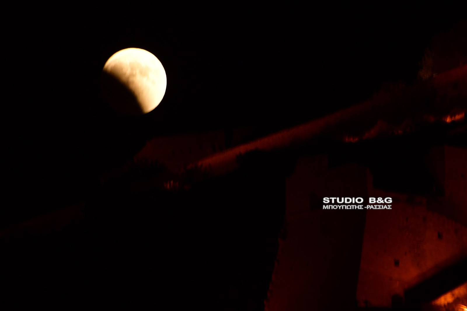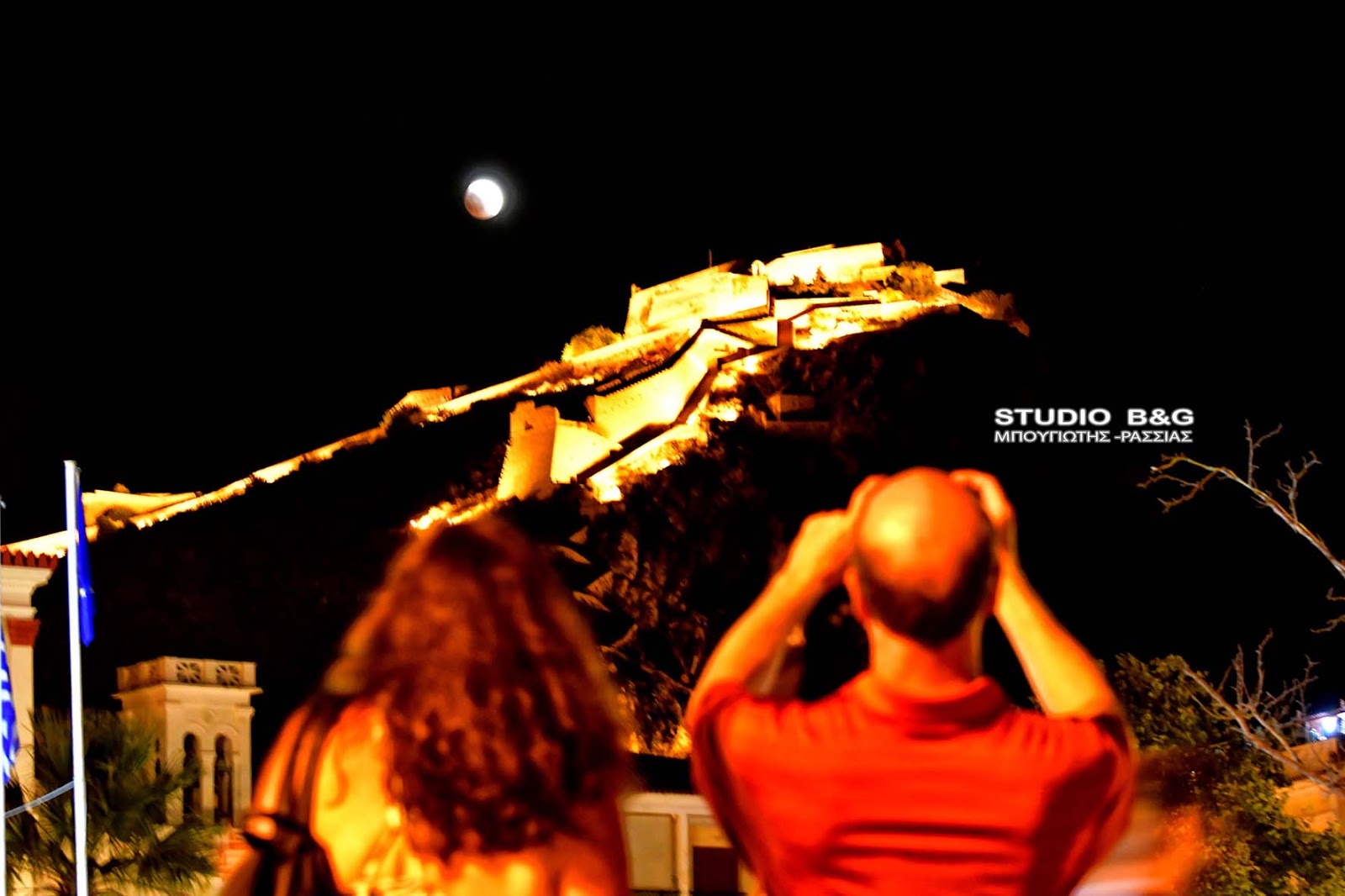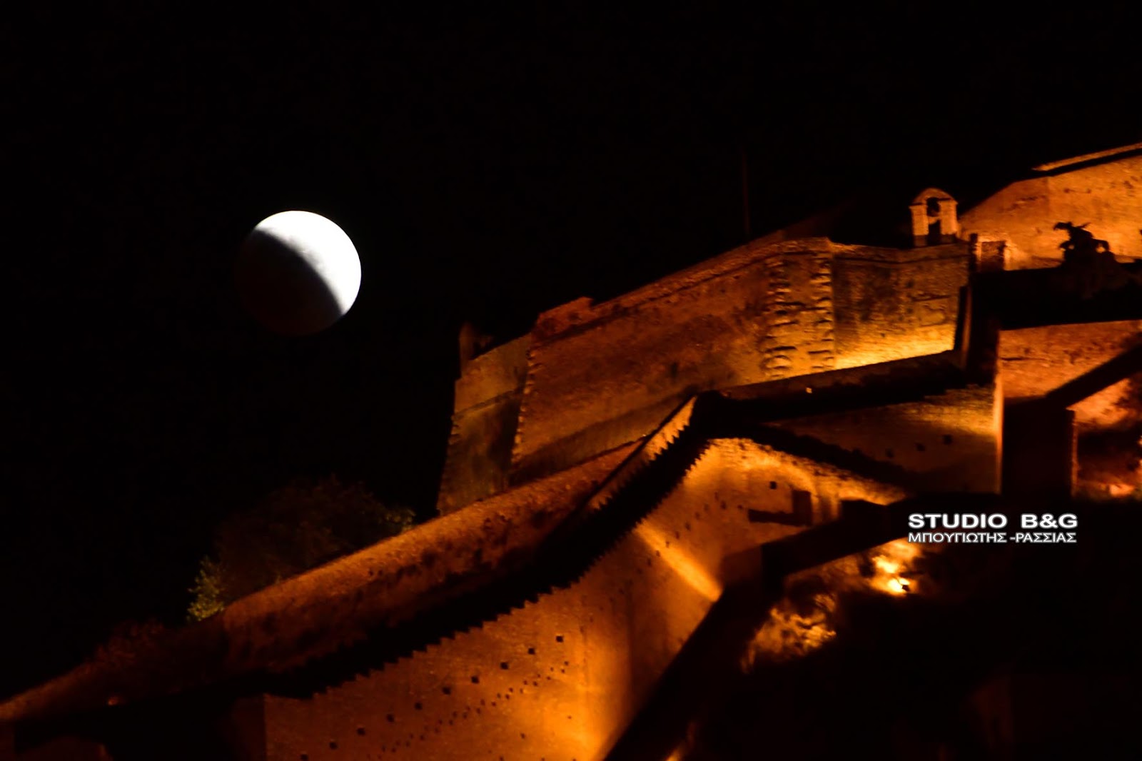 Η «ματωμένη» Σελήνη δημιούργησε μια μοναδική εικόνα στον νυχτερινό ουρανό της ιστορικής πρωτεύουσας του Νομού Αργολίδας.