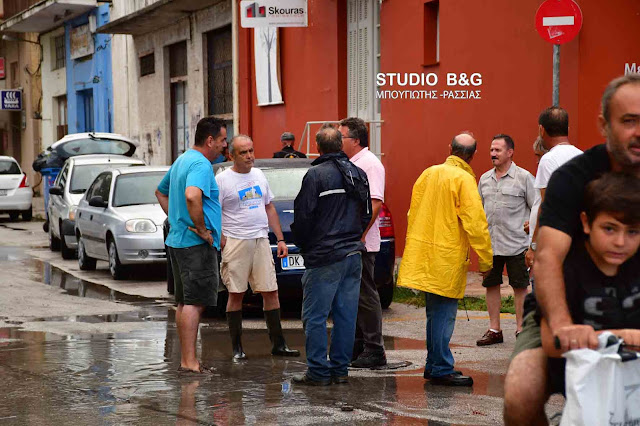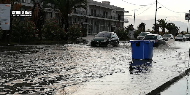 Στο Ναύπλιο κεντρικοί δρόμοι έγιναν ποτάμια και σε πολλά σημεία σκέπασαν τα πεζοδρόμια.