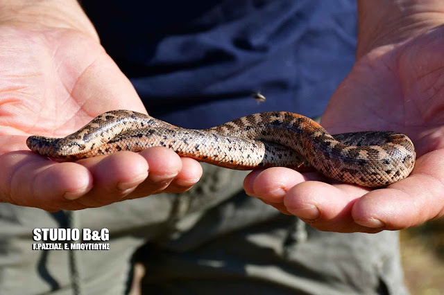 Έναν Ελληνικό βόα 60 περιπου εκατοστά, εντόπισε ο αγρότης Άρης Τσιρίκος από τα Λευκάκια σε τοποθεσία στην περιοχή του Δήμου Ναυπλιέων στην Αργολίδα την Πέμπτη 30 Αυγούστου 2018.