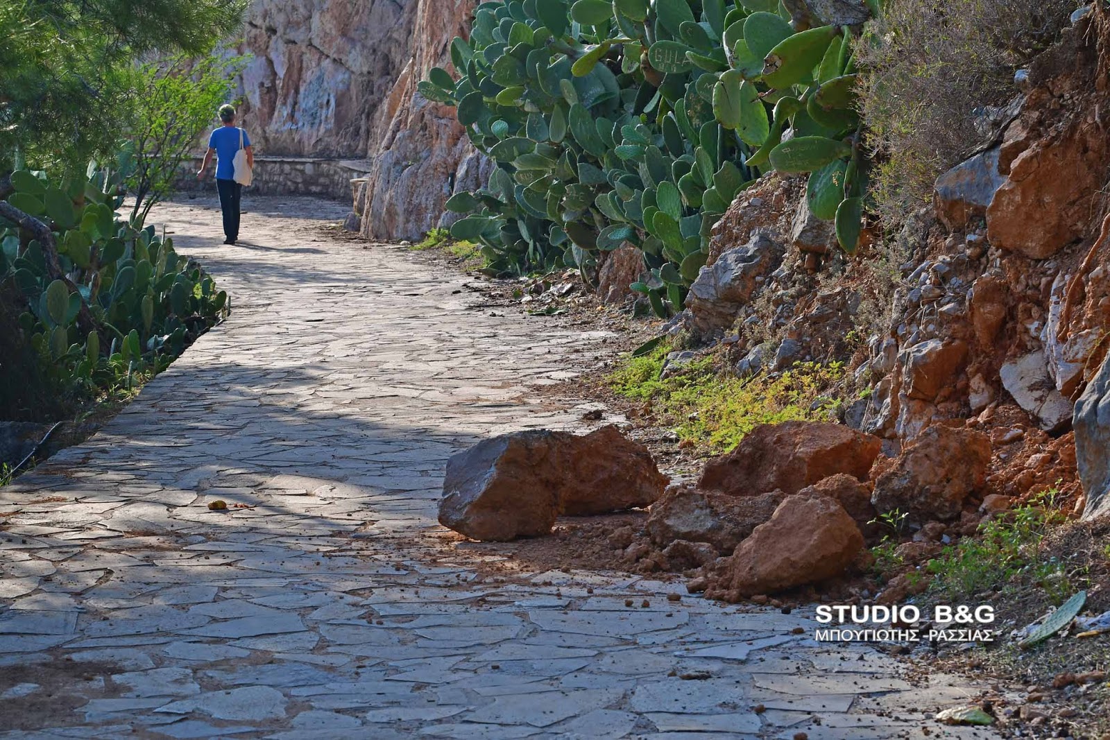Βράχια αποκολλήθηκαν, περίπου στο μέσο της περιπατητικής διαδρομής και ουσιαστικά έκοψαν τον τον πεζόδρομο στα δύο. Τον Ιούνιο του 2018 είχε σημειωθεί και πάλι μεγάλη κατολίσθηση.