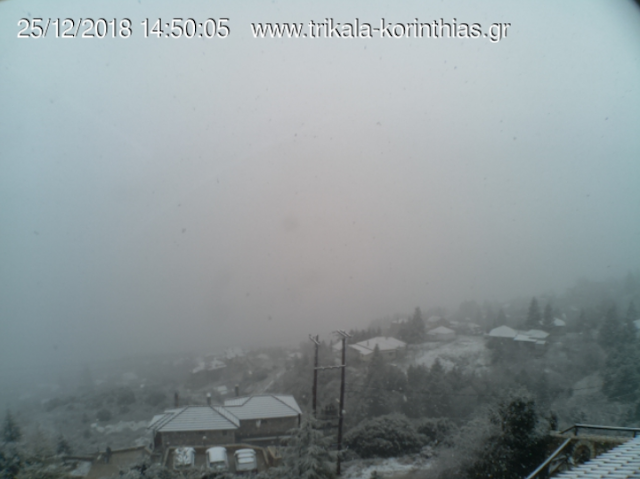 Όπως μπορείτε να δείτε και στις φωτογραφίες από την live Web Camera, στα λευκά έχουν ντυθεί τα Τρίκαλα Κορινθίας.