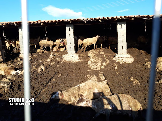Ιδιοκτήτης κτηνοτροφικής μονάδας στο Νέο Ροεινό του Δήμου Ναυπλιέων στην Αργολίδα αντίκρισε σκηνές φρίκης το πρωί που πήγε στο μαντρί του.