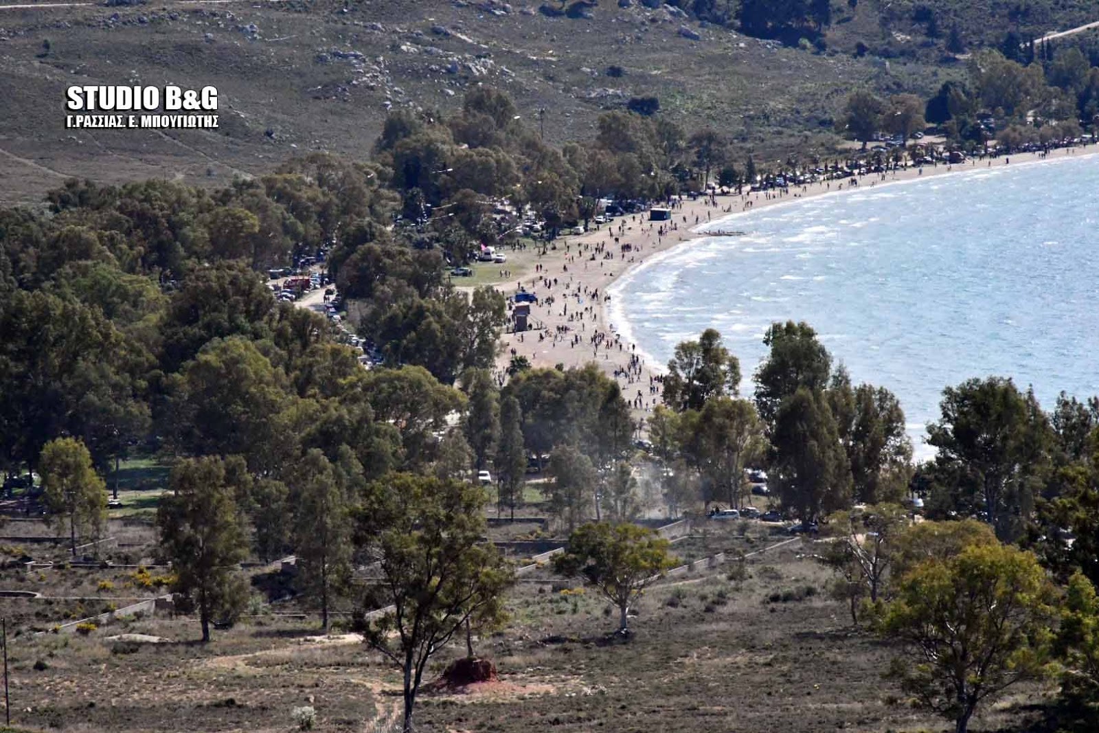 Πολύς ήταν ο κόσμος στην Αργολίδα που προτίμησε και φέτος την παραλία Καραθώνας στο Ναύπλιο για την Καθαρά Δευτέρα.