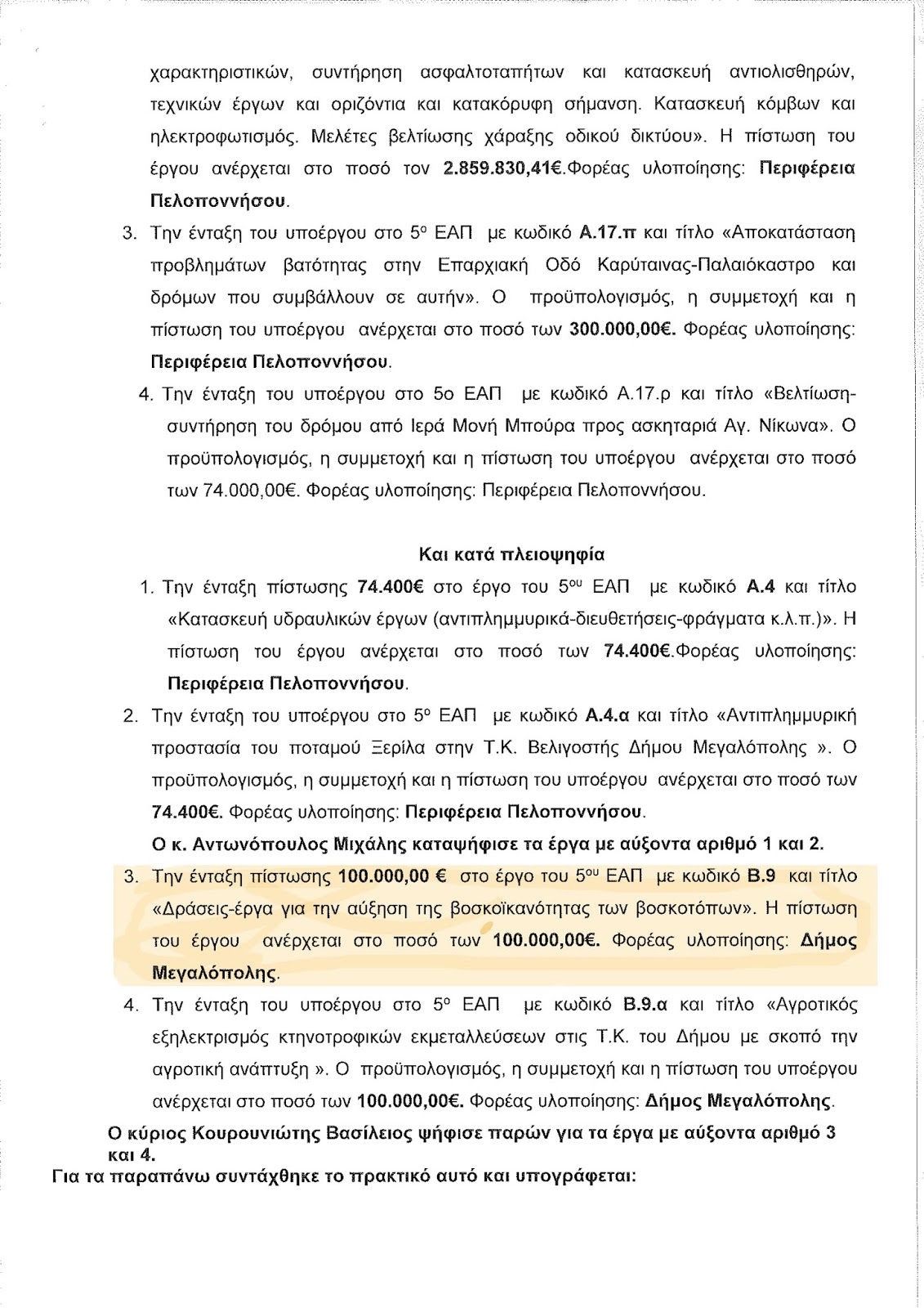 Δίνουμε στη δημοσιότητα και την απόφαση της Επιτροπής του Λιγνιτόσημου τώρα στις 19-2-2019, για διάθεση 100.000 ευρώ για δράσεις για τη βελτίωση της βοσκοϊκανότητας των βοσκοτόπων στη Μεγαλόπολη, αφού ο ανεκδιήγητος Αντιπεριφερειάρχης συνεχίζει να λέει ότι λέμε ψέματα κι ας τα έχει ψηφίσει πριν από ένα μήνα.