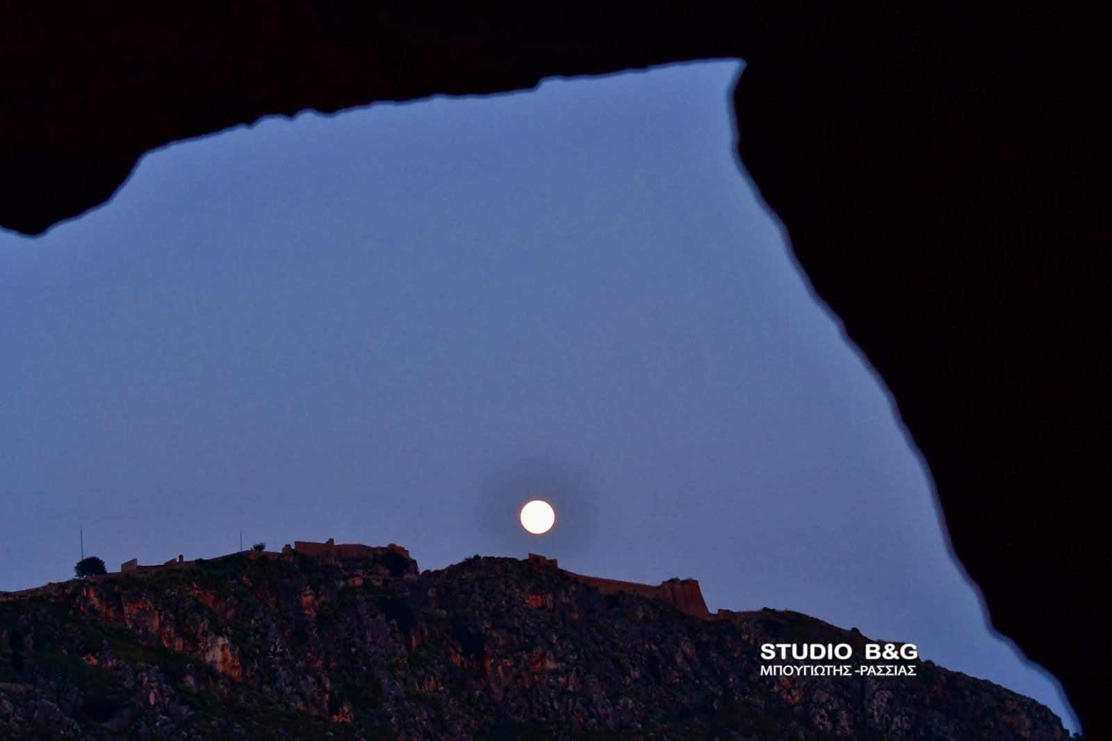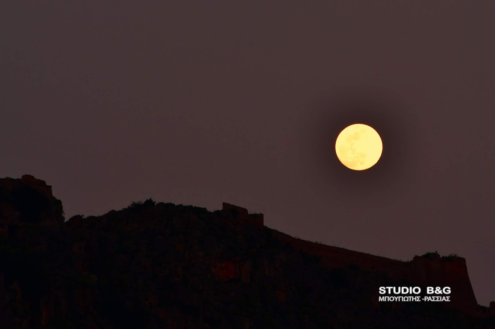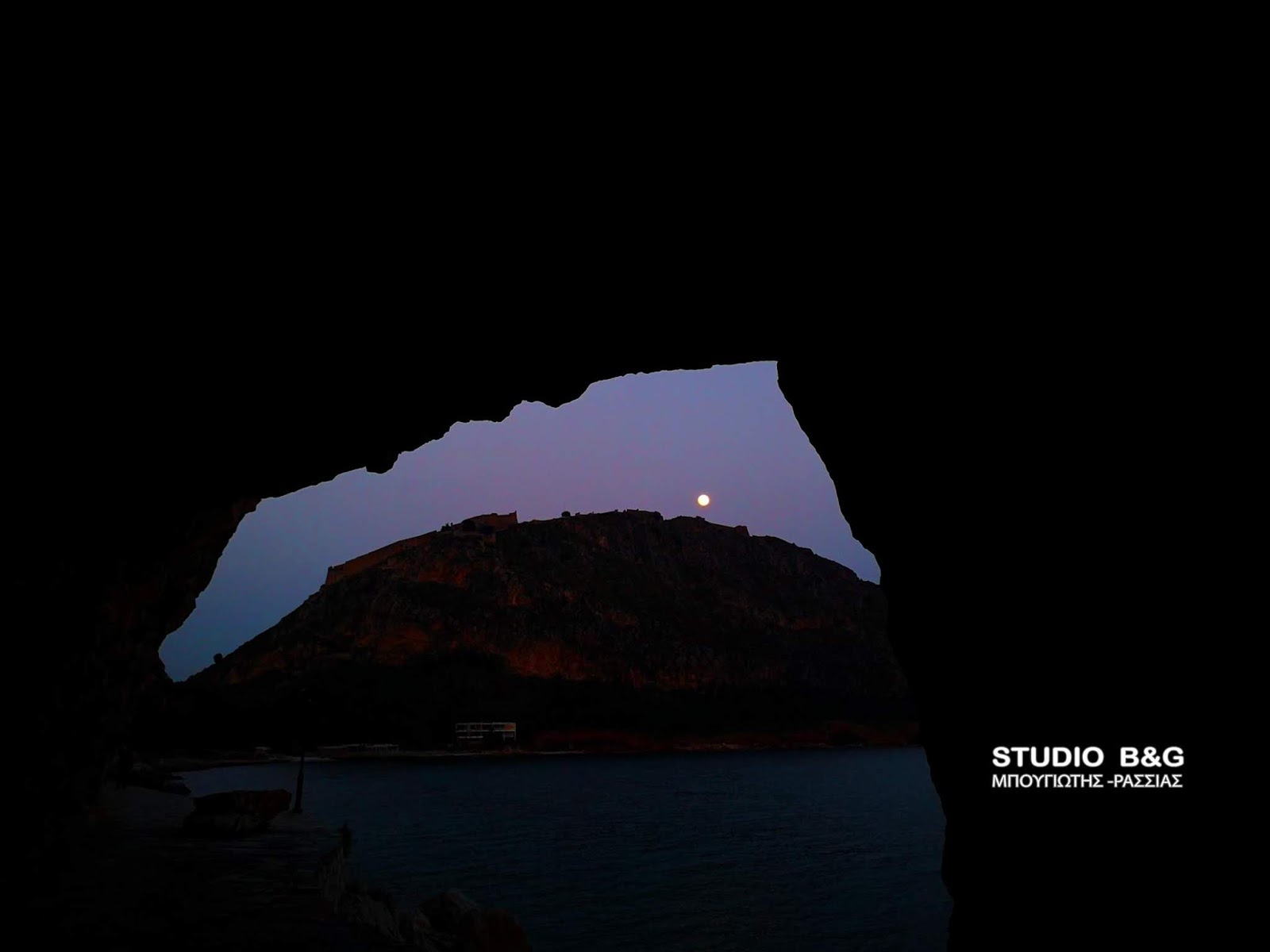 Το μαγευτικό Ροζ φεγγάρι πάνω από το Ναύπλιο (vd)