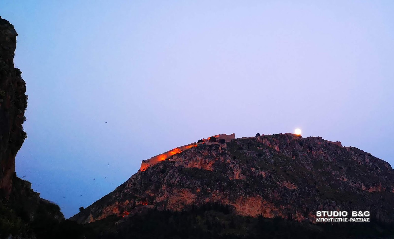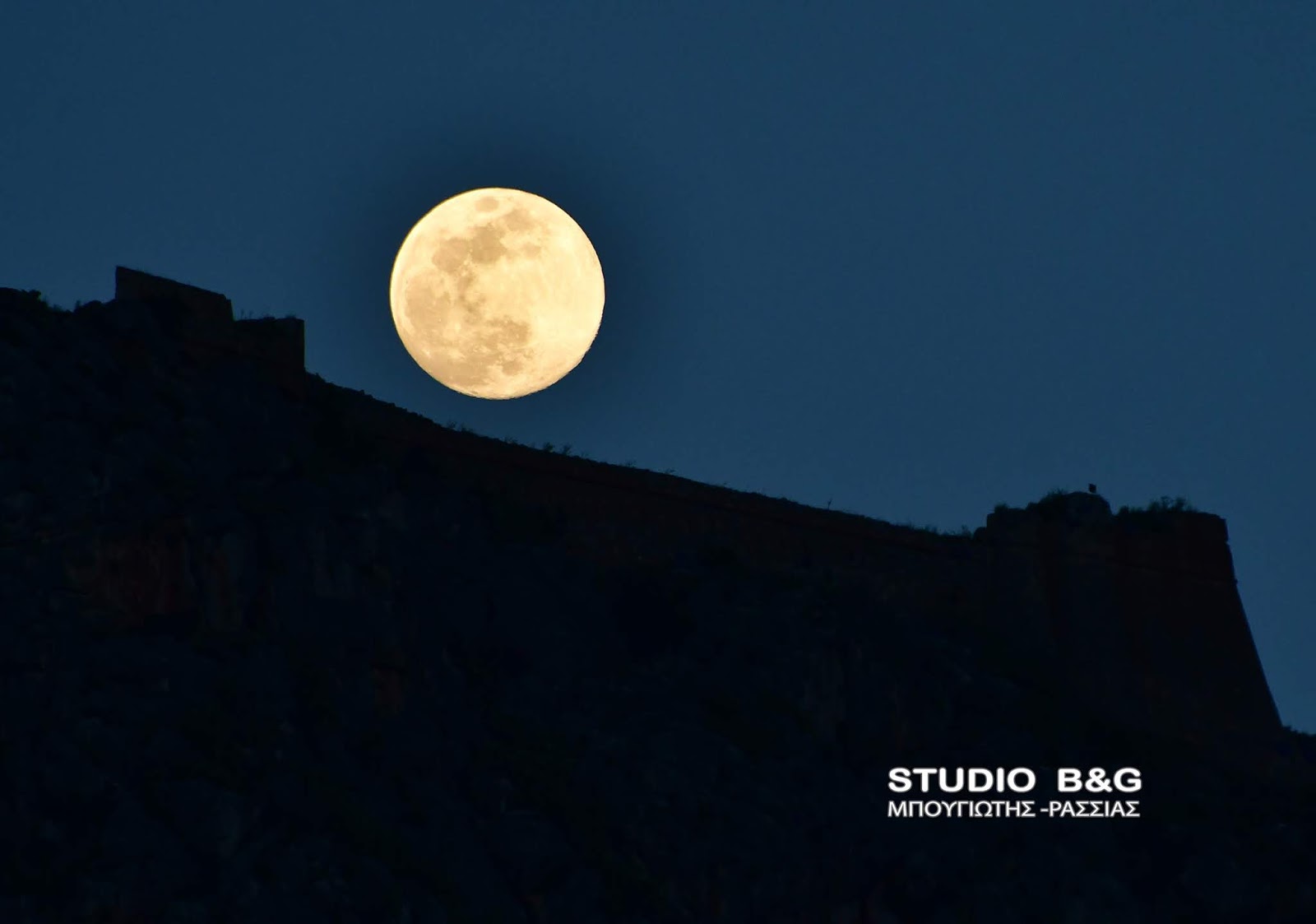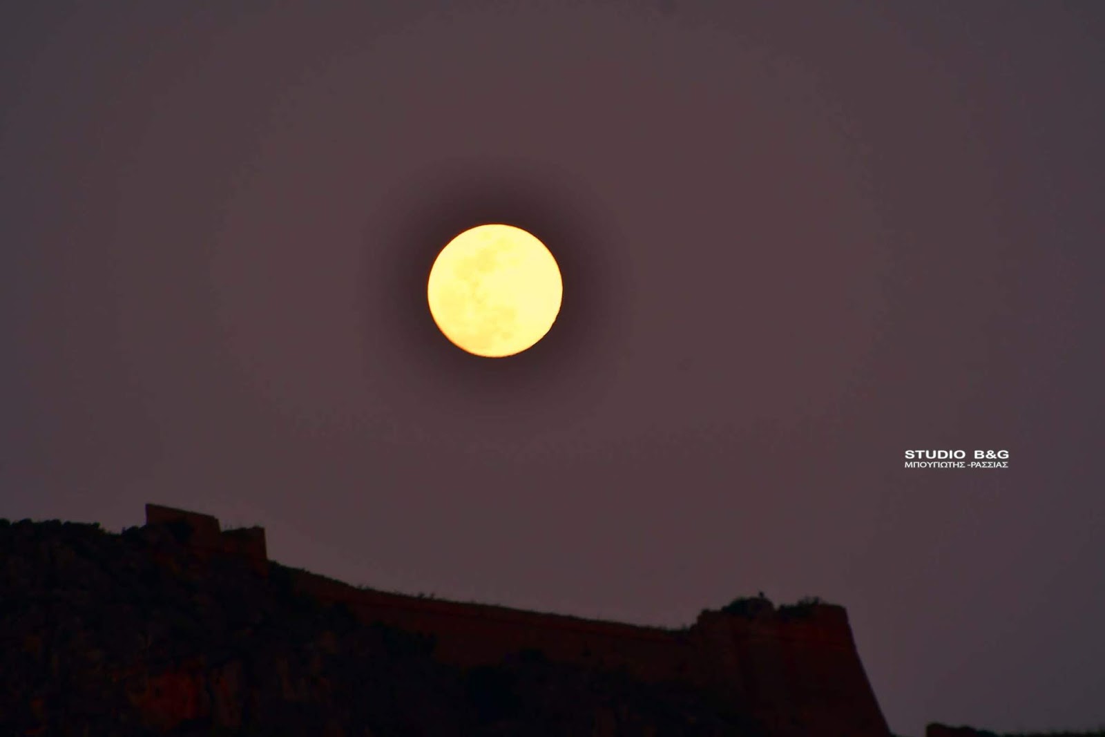 Το μαγευτικό Ροζ φεγγάρι πάνω από το Ναύπλιο (vd)