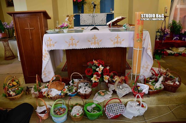 Το Πάσχα γιόρτασαν στην εκκλησία της Μεταμορφώσεως του Σωτήρος στο Ναύπλιο οι καθολικοί που ζουν και εργάζονται στην πόλη αλλά και οι επισκέπτες που κάνουν τις διακοπές τους στην Αργολική πρωτεύουσα την Κυριακή του Πάσχα 28 Απριλίου 2019.