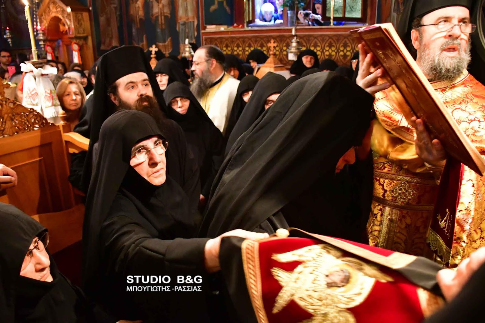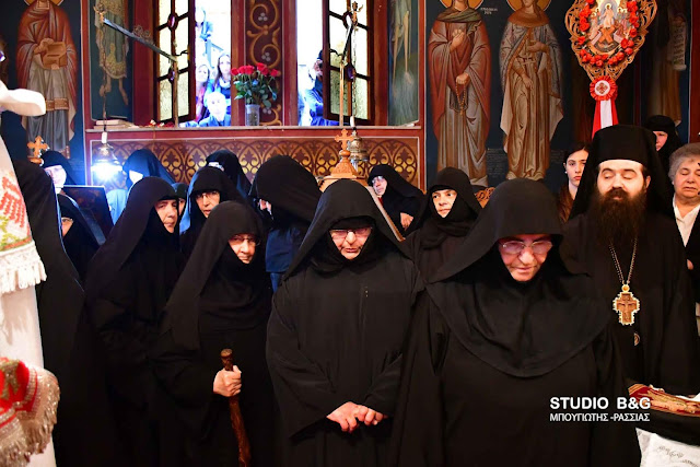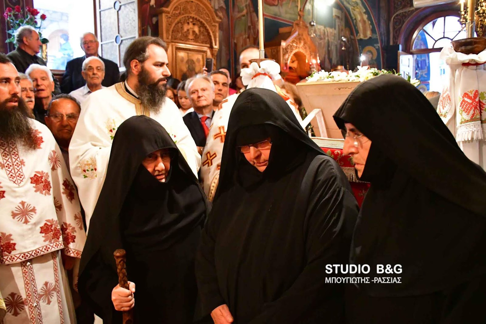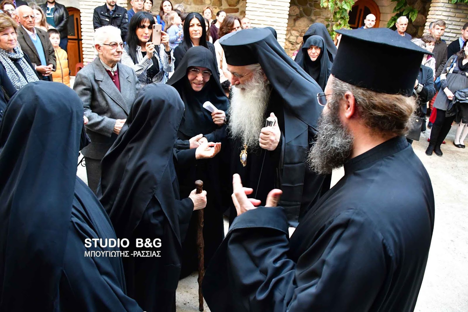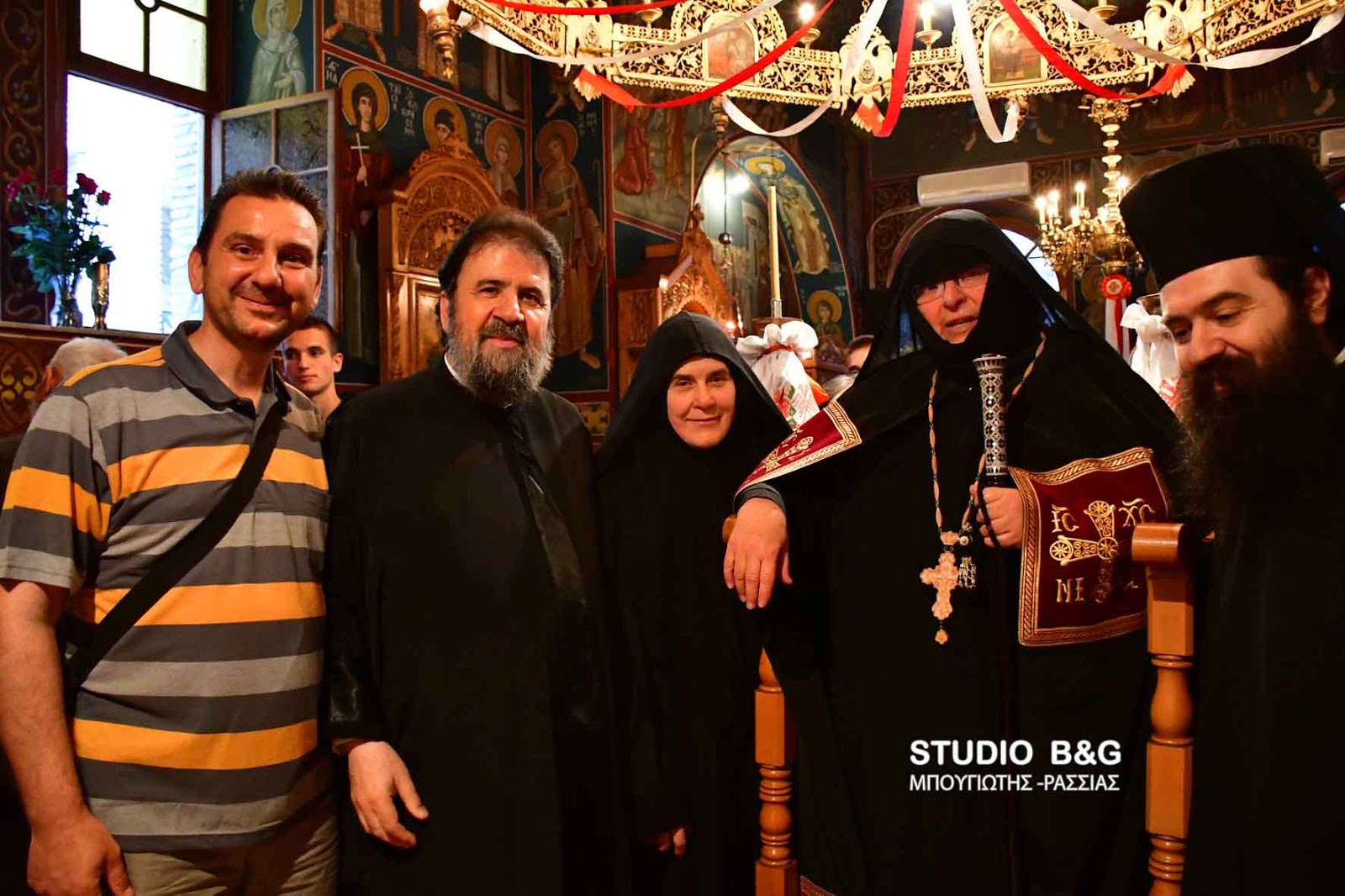 H ηγουμένη μοναχή Χριστονύμφη ευχαρίστησε τον Τριαδικό Θεό, τον μέγα προστάτη της μονής Άγιο Δημήτριο , τον Μητροπολίτη για την εμπιστοσύνη, την πνευματική καθοδήγηση, τη συμπαράσταση και την πατρική του αγάπη, τους κατά σάρκα γονείς της, τους ιερείς της Ιεράς Μητροπόλεως Αργολίδος , τον λαό της περιοχής που με προθυμία και ζήλο στηρίζει τη μονή, τις αδελφές της μονής. Η νέα ηγουμένη κατάγεται από την Αργολίδα και την περιοχή της Αγίας Τριάδος Μέρμπακα.