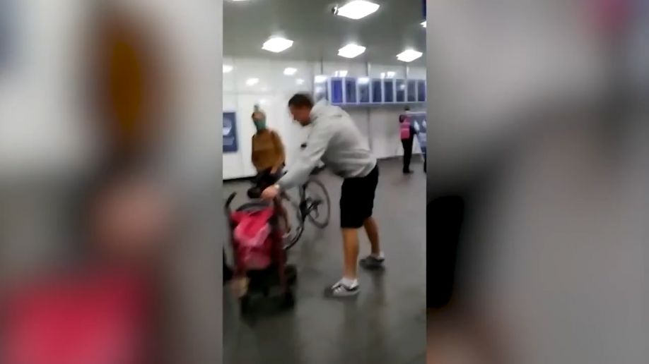 Την ίδια στιγμή ένας άντρας, που κρατούσε ένα καρότσι στο οποίο μέσα είχε ένα παιδί, ο οποίος επίσης δεν φορούσε μάσκα. «Ούτε εσύ φοράς μάσκα» είπε χωρίς όμως να απευθυνθεί στον άντρα με το μωρό.