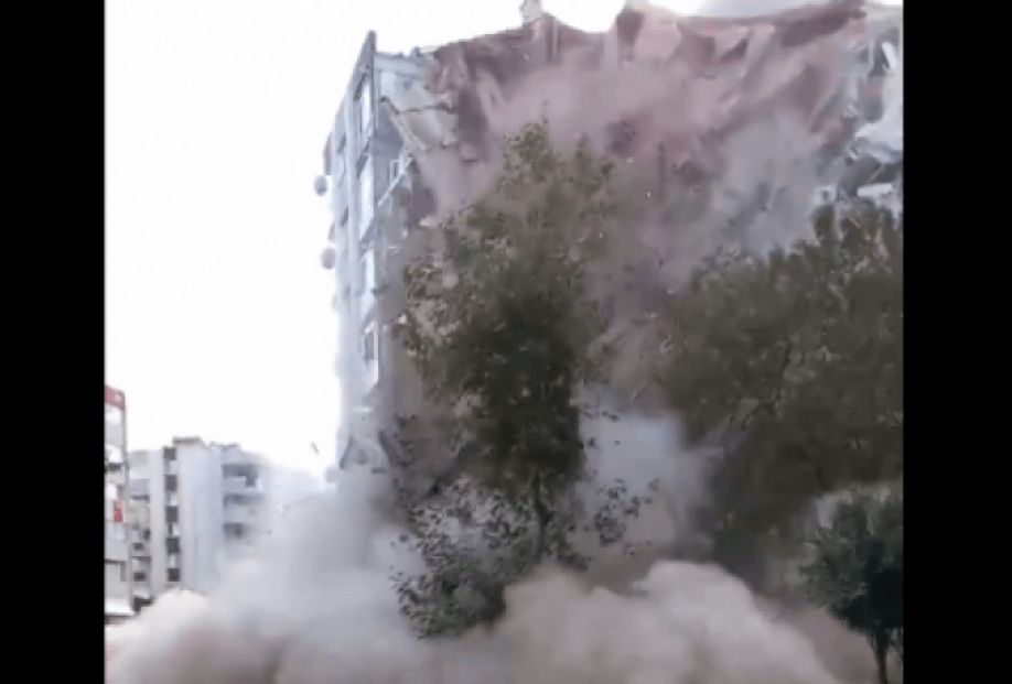 Ενδεικτικό της καταστροφής είναι το βίντεο που δείχνει κτίριο την Σμύρνη να καταρρέει σαν πύργος από τραπουλόχαρτα.