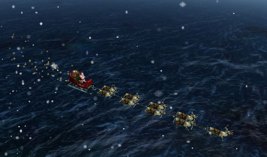 Αφού απογειώθηκε από την έδρα του στον Βόρειο Πόλο, το έλκηθρο του Άγιου Βασίλη σύντομα πήρε ύψος και πέταξε πάνω από πολλές χώρες της Ασίας και της Ωκεανίας, όπως για παράδειγμα την Ιαπωνία, τη Νότια Κορέα, την Αυστραλία και τη Νέα Ζηλανδία.