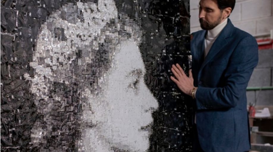 Με τη μοναδική τεχνική που χρησιμοποιεί, σχεδίασε ένα έργο τέχνης, το οποίο έχει τη μορφή της Βασίλισσας Ελισάβετ, σε νεαρή ηλικία.