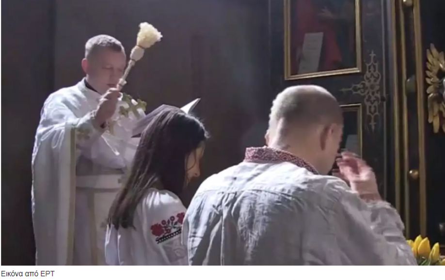 Όπως θα ακούσετε στο ρεπορτάζ της ΕΡΤ, το ζευγάρι παντρεύτηκε μεταξύ δύο συναγερμών για βομβαρδισμό. «Σας παρακαλώ να γίνει ζώνη εναέριου αποκλεισμού πάνω από την Ουκρανία», είπε στην κάμερα ο Βολόντα.